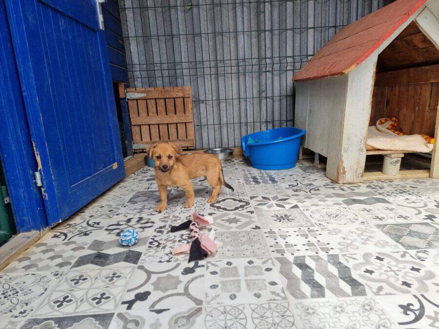 Die kleine Alma wurde von Freunden des Shelters ganz allein und völlig verängstigt auf der Straße gefunden. Leider konnten sie das Welpenmädchen nicht bei sich aufnehmen, und so brachten sie Alma in den Place for Strays.