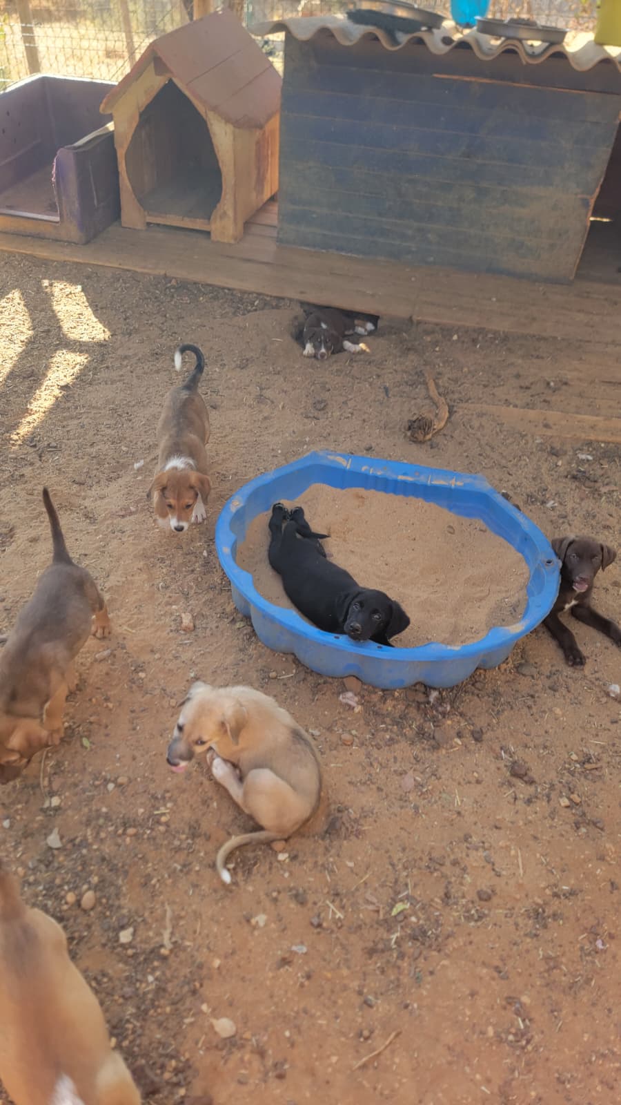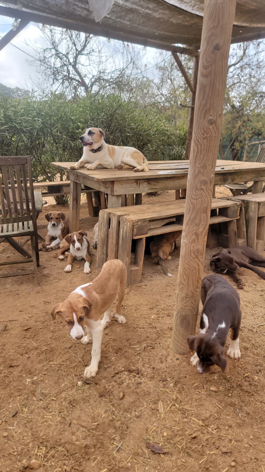 Doch im Gebüsch lebten nicht nur sie – auch erwachsene Hunde, wahrscheinlich die Eltern. Für uns stand fest: wir wollen unbedingt versuchen, vor allem die Mutterhündin einzufangen und kastrieren zu lassen, denn sonst wird es bald den nächsten Wurf geben und noch mehr scheue Welpen werden geboren. Für unser Shelter war das eine große Herausforderung – 12 Welpen bedeuten volle Quarantänestation, viel Futter und medizinische Versorgung.