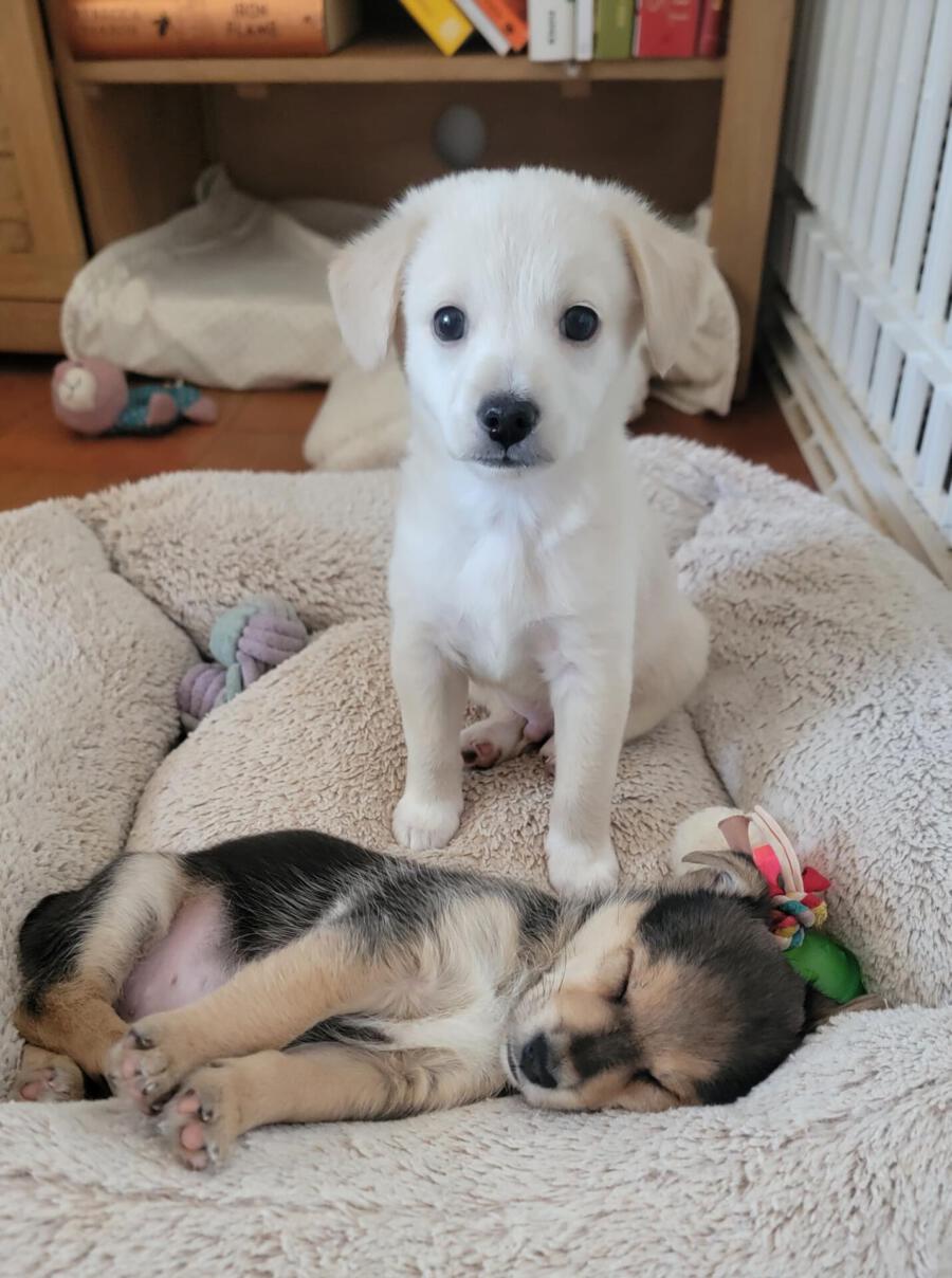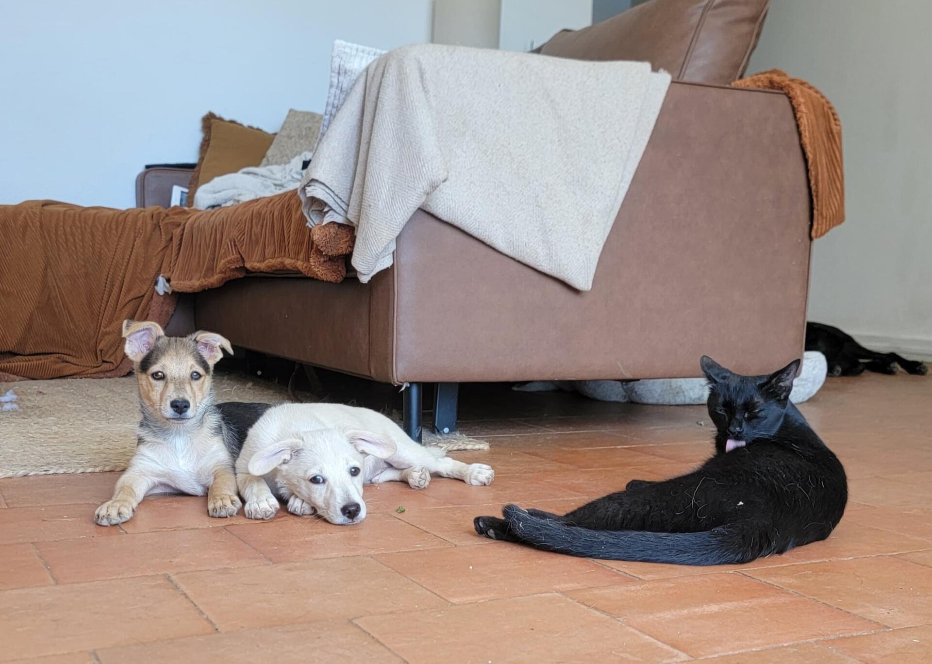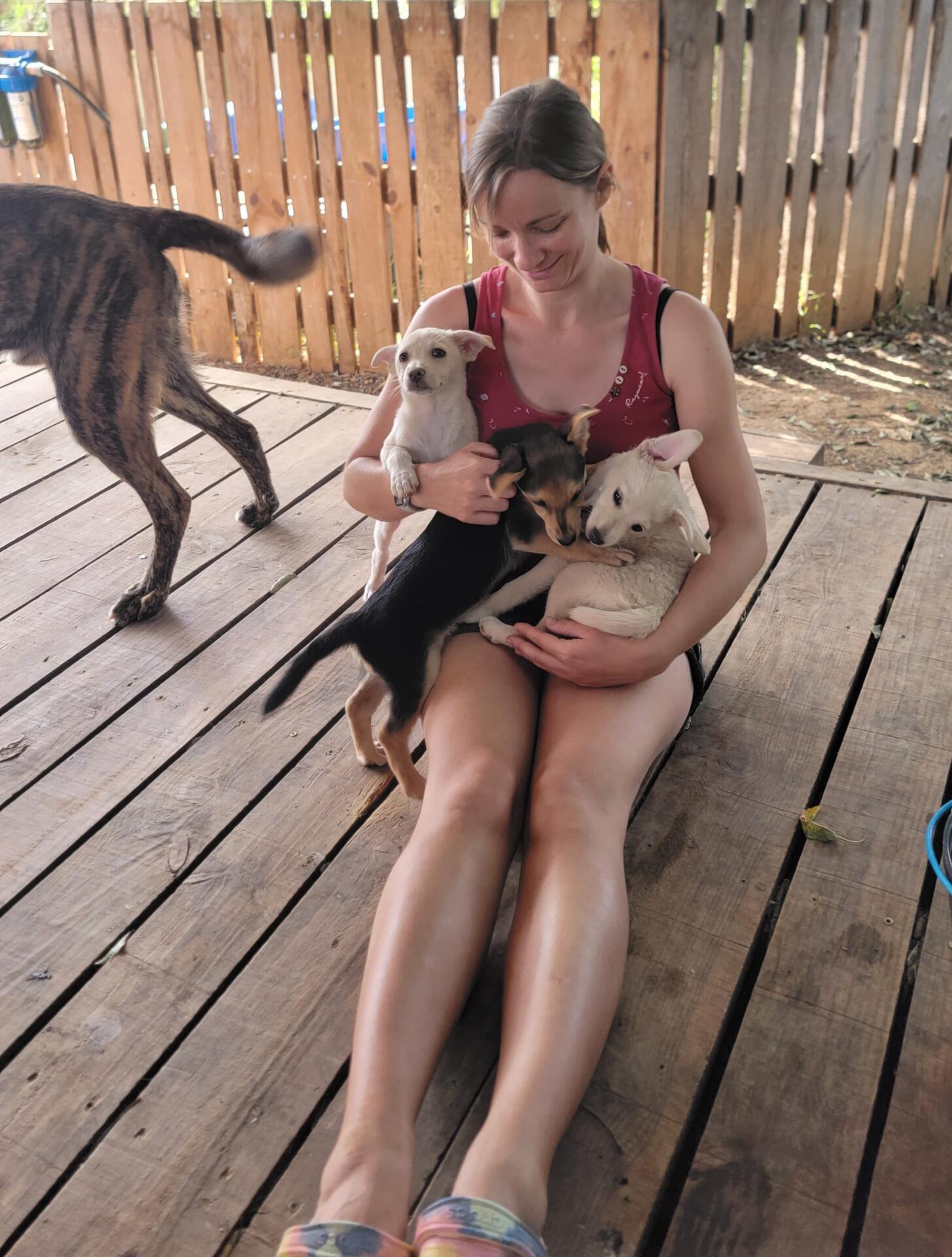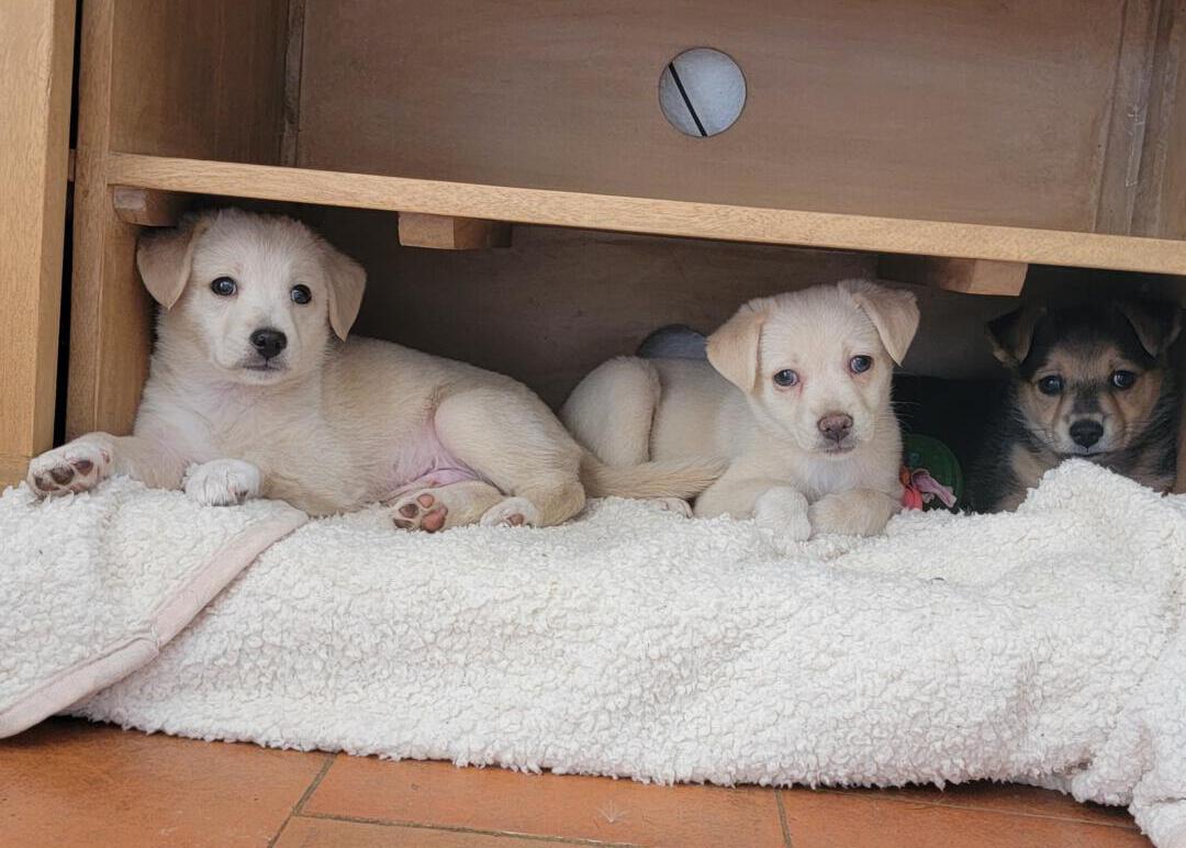Dank der schnellen Hilfe von engagierten Helfer:innen und der liebevollen Pflege durch Elena, die sich rund um die Uhr mit Fläschchen und ganz viel Liebe um sie kümmerte, haben sich die drei zu starken, gesunden Junghunden entwickelt.