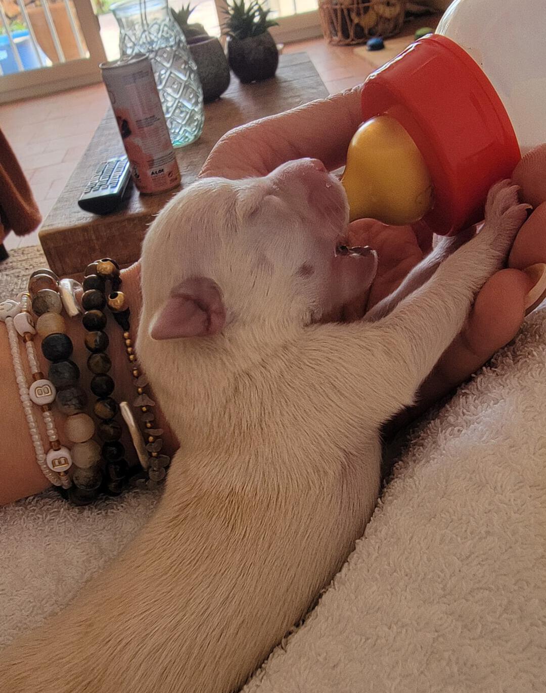 Die drei Welpen Bailey, Piña und Vino wurden in einer Mülltonne gefunden und glücklicherweise gerettet. Die kleinen Welpen waren schätzungsweise nur wenige Stunden alt als sie entdeckt wurden.