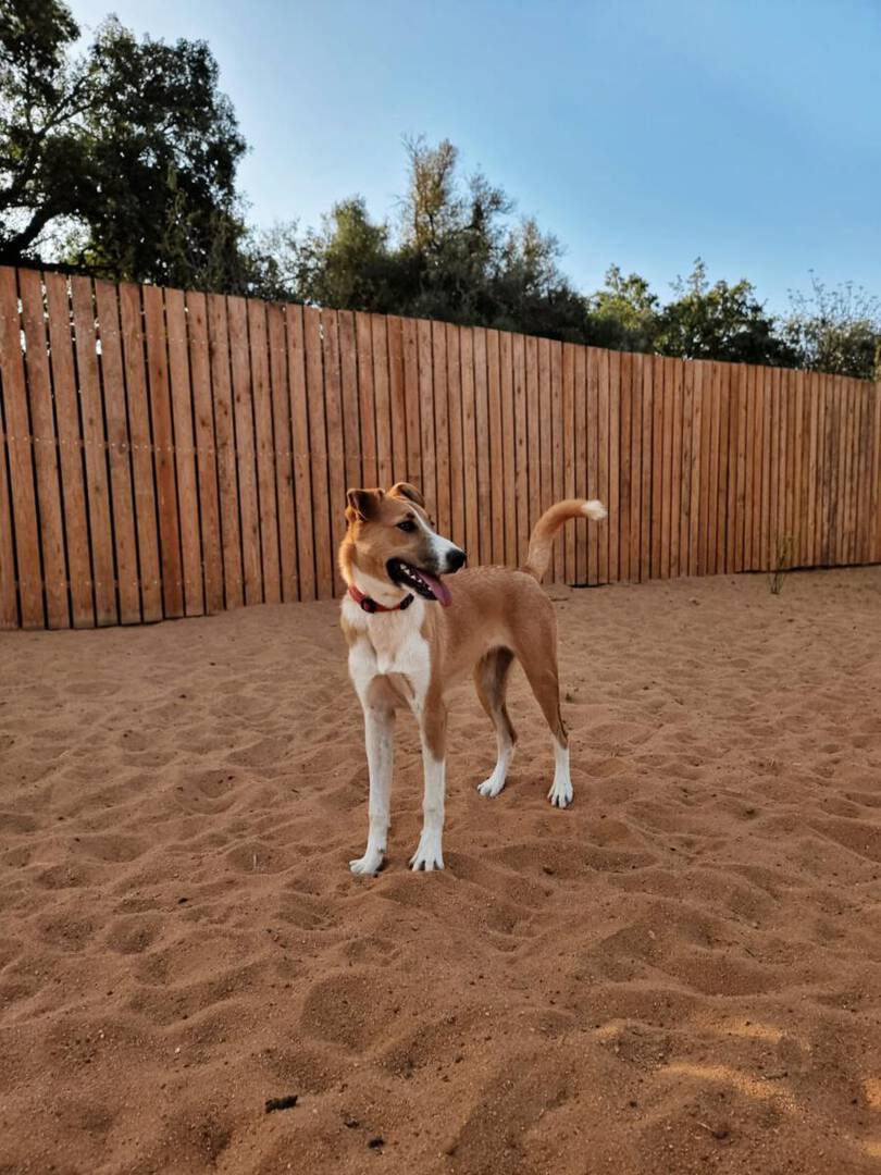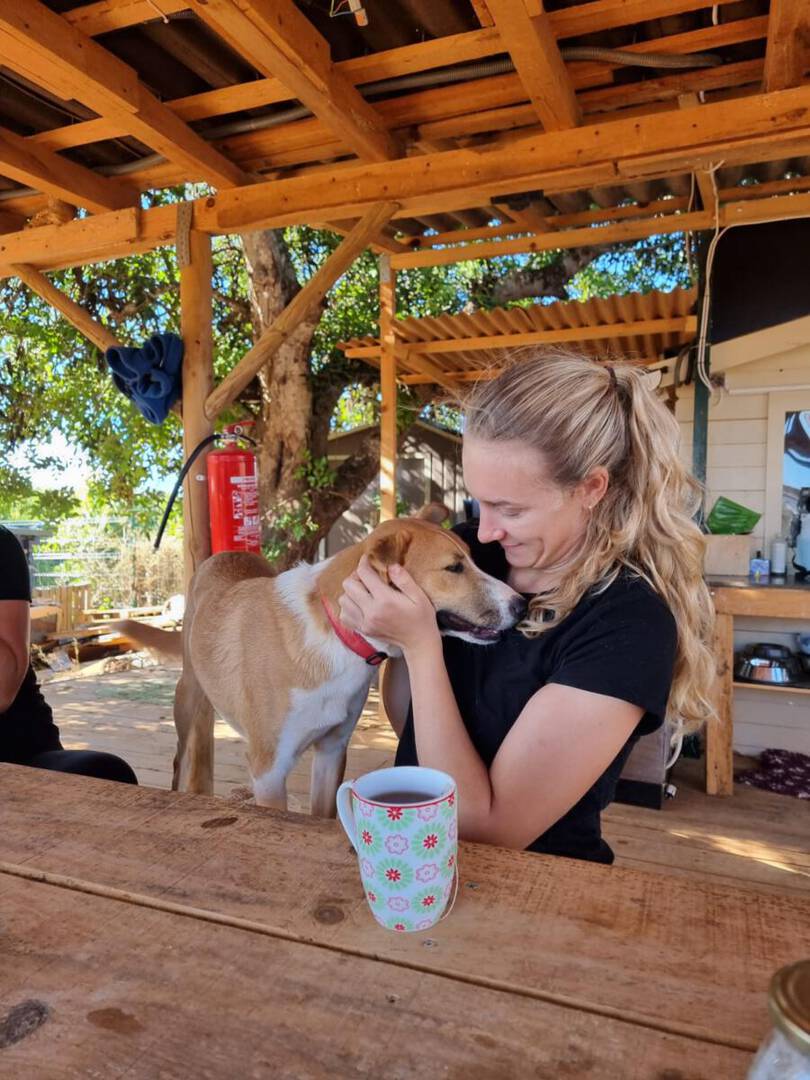 Unsere süße Bonnie ist im Vergleich zu ihrem Bruder Oscar etwas ruhiger und hält sich erstmal im Hintergrund, während die anderen Hunde im Shelter um die Menschen herumwuseln. Wenn man dann jedoch Bonnie für sich alleine hat und mit ihr unterwegs ist, merkt man erst, wie besonders toll die sanfte Maus ist! Gemütlich entdeckt sie gerne in aller Ruhe mit den Menschen die Welt und verhält sich draußen wahnsinnig Vorbildlich. In neuen Situationen reagiert sie erstmals unsicher und vorsichtig. Andere Hunde helfen ihr hier ungemein, an denen sie sich orientieren kann und die ihr Sicherheit geben. Unsere Bonnie läuft super an der Leine und durfte bisher auch schon auf ein paar Ausflüge gehen und z.B. den Strand entdecken. Bonnie kann sich zwar auch super alleine beschäftigen, doch auch sie genießt es, wenn man sie in ruhigen Momenten kuschelt und freut sich sehr über die menschliche Aufmerksamkeit. Wir könnten uns diese süße Maus auch super als Zweithund in einer Familie vorstellen und hoffen, dass sie bald ihr für-immer Zuhause findet.