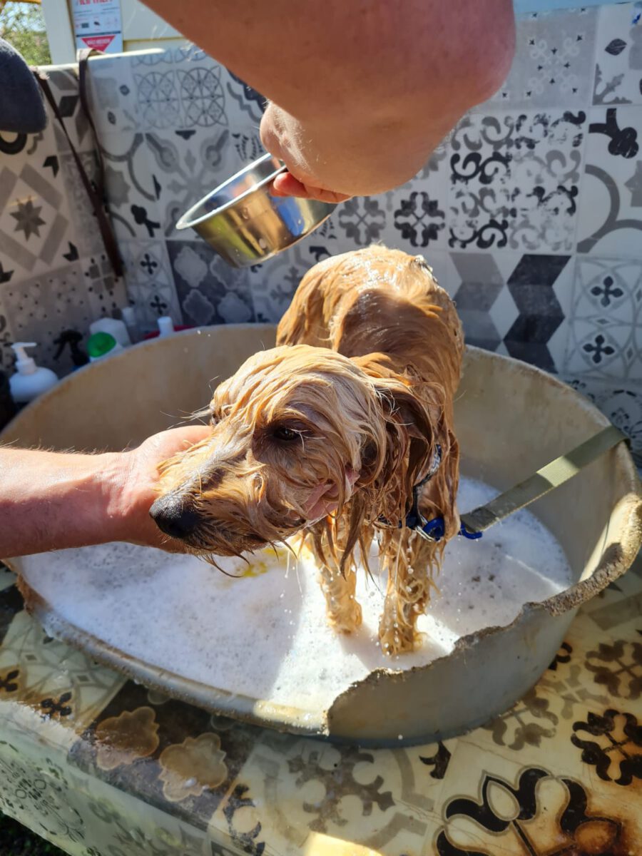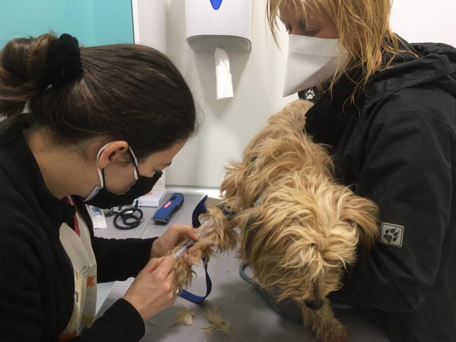 Boomer has been spotted straying on the street for a long time, but animal rights activists just couldn’t catch this smart guy. It finally worked and Boomer came to us in the PLACE for STRAYS. He looked very neglected, but he must have had a home once. He was probably abandoned at some point. We bathed him first so that he feels comfortable in his skin. He was also examined by our vet and blood was taken. Unfortunately, the tests showed that the little one suffers from leishmaniasis, tick bite fever and heart worms. He is now being treated for all these diseases. For more on this see “Medical Care”.