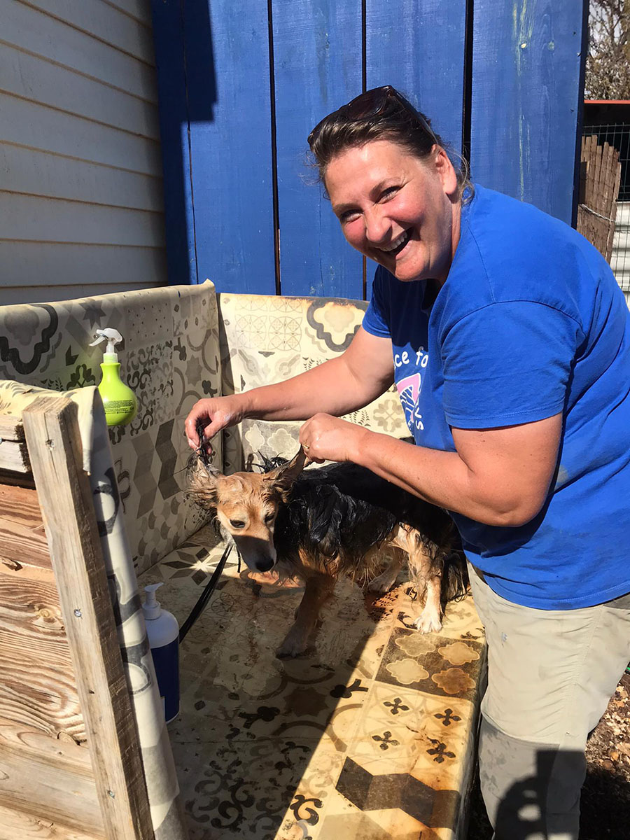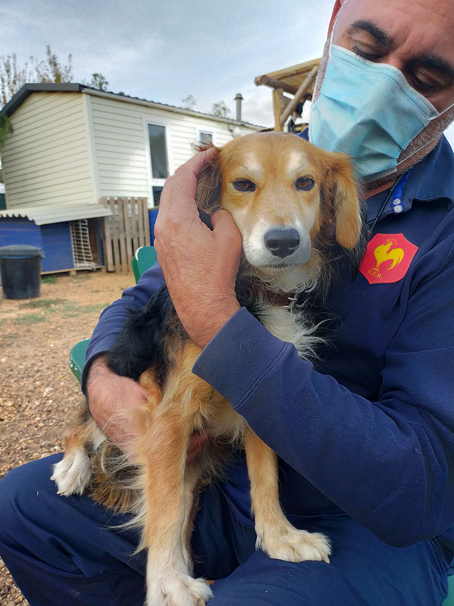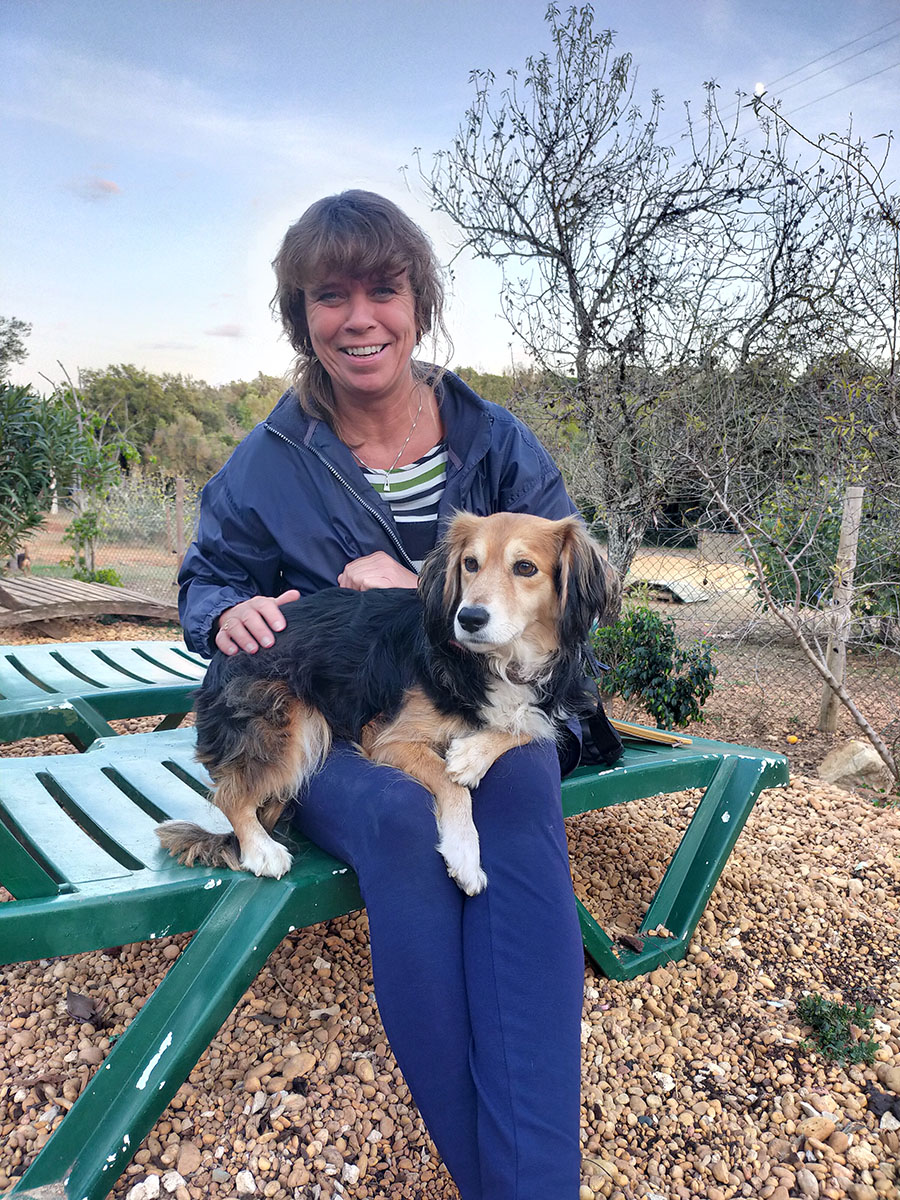 Brownie doesn’t seem to have had a bad experience at her previous home. She is very fond of people and demands a lot of cuddles. Brownie gets along well with the other dogs.