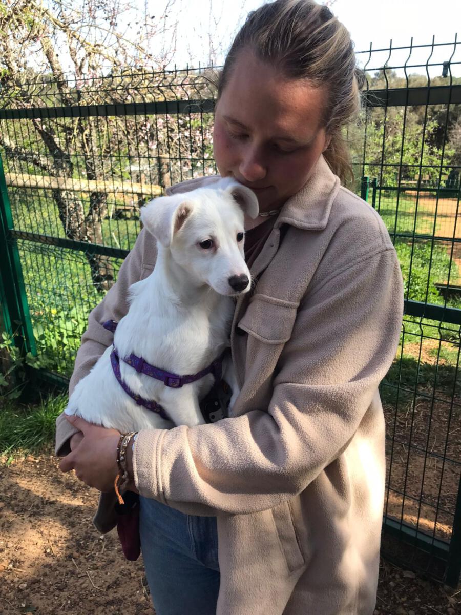Unsere kleine Camille lebt jetzt seit knapp 4 Wochen bei unser Helferin Lena, die sie netterweise als Pflegehund aufgenommen hat. Und seitdem hat der kleine Wirbelwind schon ein großes Talent gezeigt: Quatsch machen! Camille hat immer “lustige” Ideen und es wird nie langweilig mit ihr. Die kleine Maus kann ganz schön frech sein, hat aber (auch dank Lenas erwachsenen Hunden) gelernt wie man sich auch mal benehmen kann. An der Leinenführigkeit arbeitet Lena ganz fleißig und draußen gibt sich Camille auch ganz mutig und abenteuerlustig. Wenn dann aber gruselige Fremde oder andere Hunde auftauchen, wird sie ein bisschen misstrauisch und unsicher. Auch das generelle Misstrauen gegen Fremde hat sie noch nicht ganz abgelegt. Aber sie lässt sich immer schneller überzeugen, dass man es nur gut mit ihr meint.