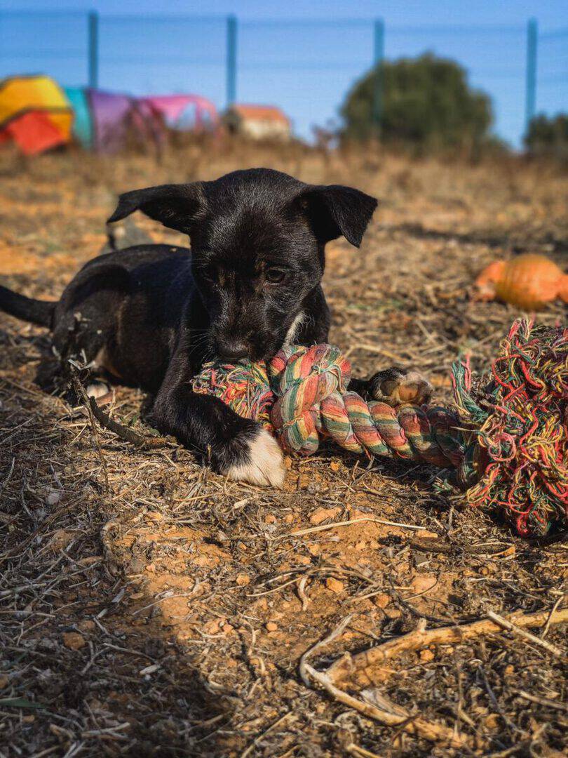 Carla ist von ihren Geschwistern die ruhigste und zurückhaltendste, aber mindestens genauso smart. Sie hat eher ein zartes und ruhiges Wesen. Das heißt natürlich nicht, dass sie ihre Geschwister nicht gerne mal in die Schranken weist, wenn es ihr zu bunt wird. Insgesamt schläft sie mehr als die anderen beiden oder beobachtet das Geschehen aus einer ruhigen Ecke. Manchmal kommt sie einfach und legt sich zum schlafen auf den Schoß. Auch wenn sie Ruhe mag, ist sie genauso dabei, wenn es darum geht etwas Neues zu erkunden. Sie ist wenig schreckhaft und begrüßt neue Menschen ebenso gern wie neue Hunde.