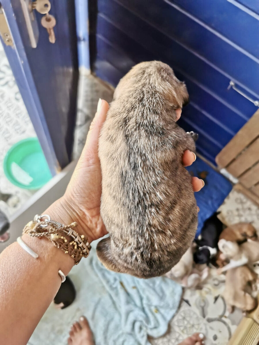 Wir erhielten wieder einmal einen Hilferuf von einer engagierten Tierschützerin, die Nikita und ihre neugeborenen Welpen in einem Zigeunerlager im Dreck liegen sah. Damit diese Hündin nicht weitere Würfe auf die Welt bringen muss und die Welpen nicht einem Leben in Angst, Krankheit und Gefahr auf der Straße ausgesetzt sind, nahmen wir die kleine Familie bei uns im PLACE for STRAYS auf. Hier kümmern wir uns nun liebevoll um Nikita und ihre Kleinen, so auch um den kleinen Charlie.