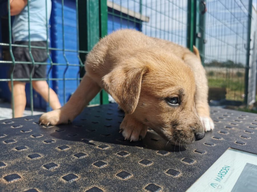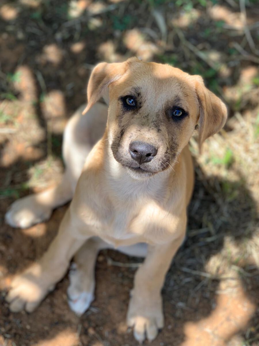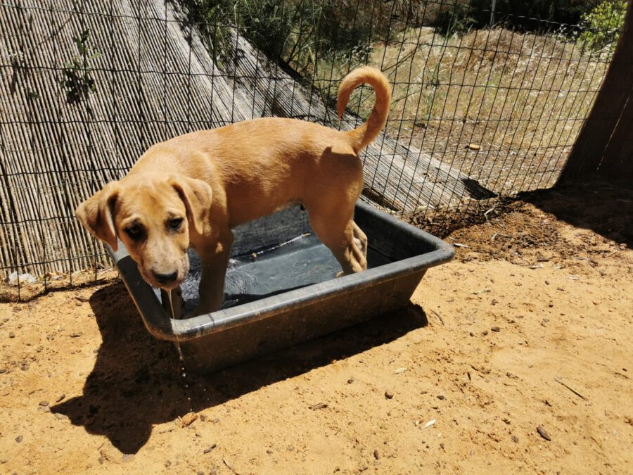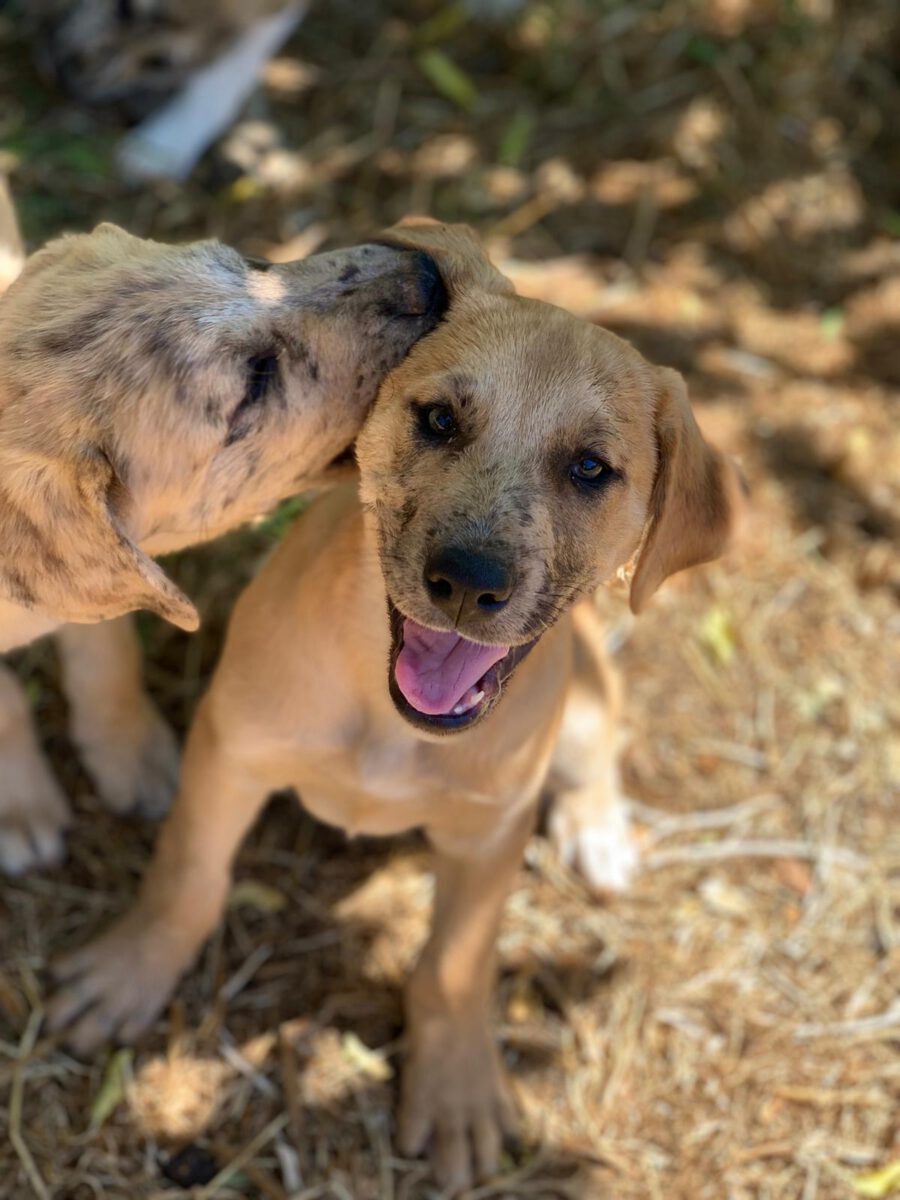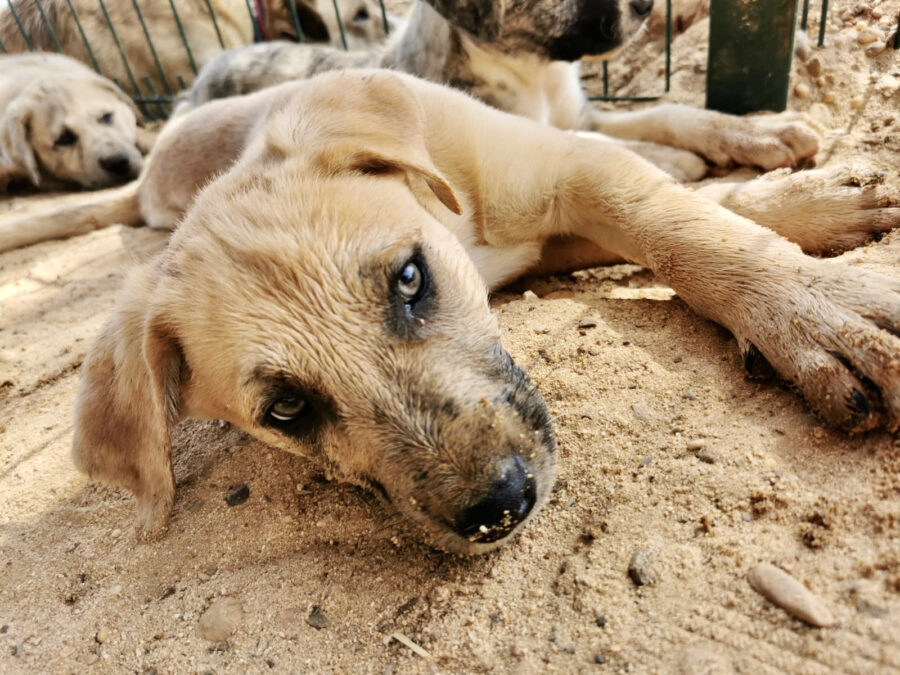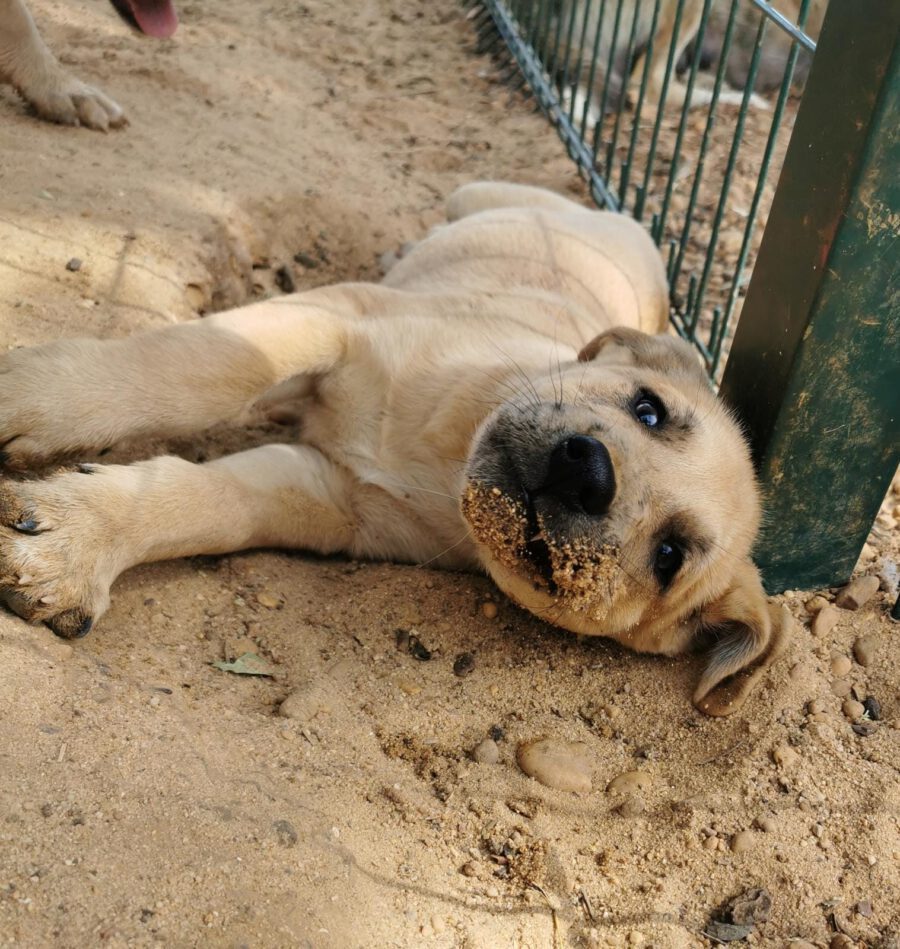 The dog Gala lived together with her mother Amora and her sister Shenzi on the street or near houses. Dear residents fed them, but could not take them in the house. They searched for help for a long time and found none. By a happy coincidence they came into contact with our helper Claudia and so we took the three dogs in with us. Unfortunately we came too late because Gala and her sister were pregnant. On February 26th, 2021 Gala gave birth to 10 healthy puppies. One of them is George.