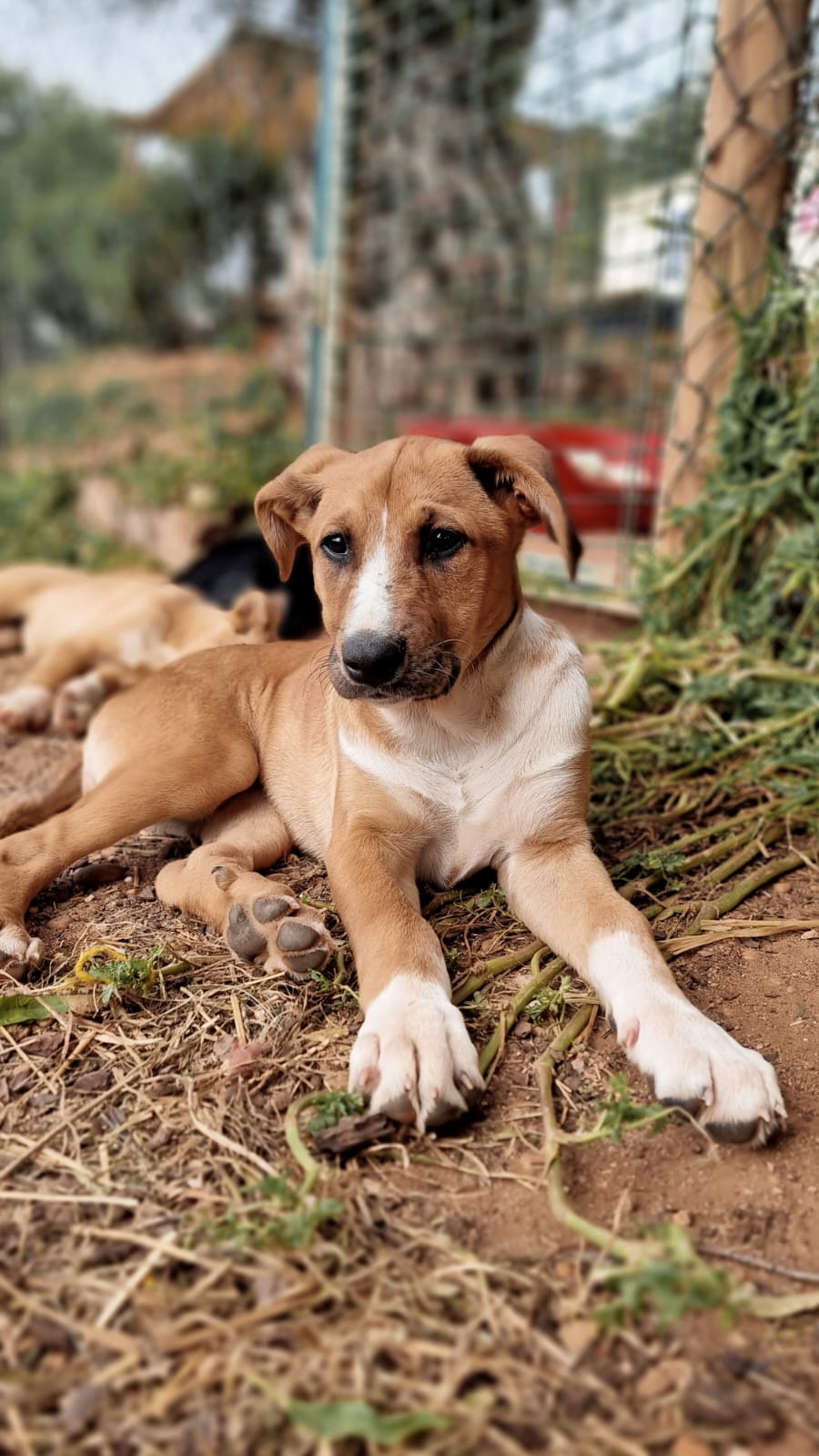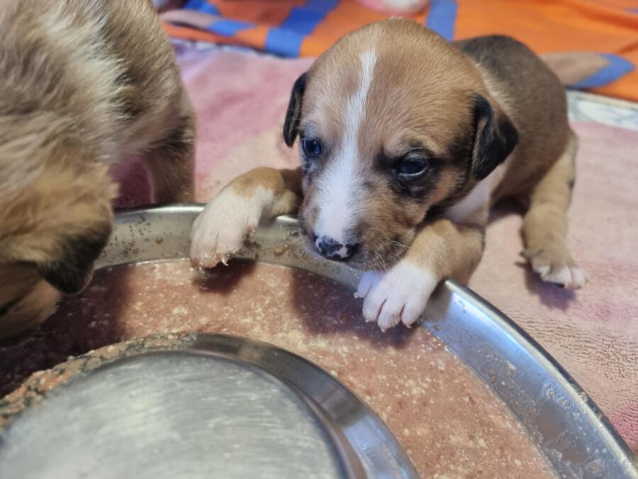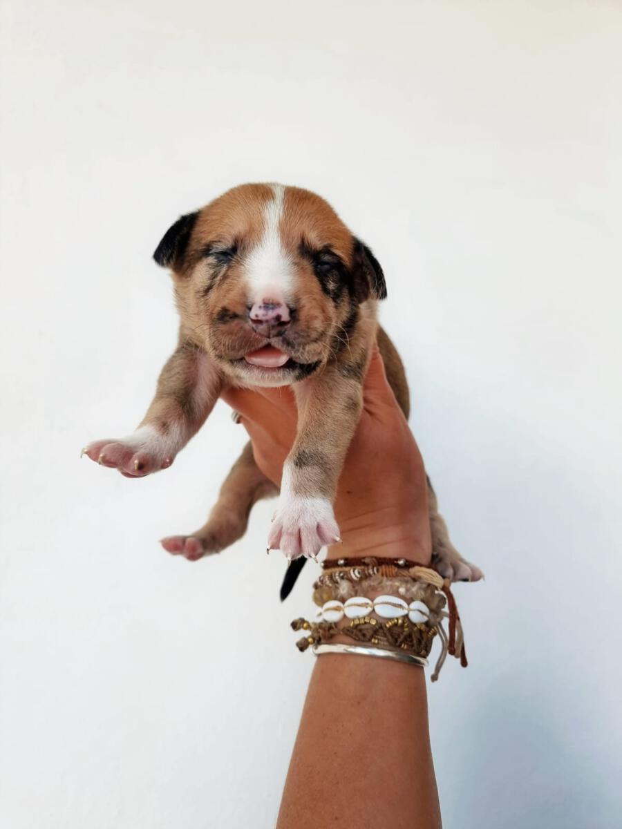 Mit einem restlichen Stück Schnur um den Hals und zahlreichen Wunden wurde die Hündin Priya von einem Mann auf seinem neu gekauften Grundstück zurückgelassen aufgefunden. Leider konnte er sie wegen seines eigenen Hundes nicht behalten und brachte sie deshalb zu Algarvet. Nachdem sie dort ihre ersten Untersuchungen sowie Behandlung ihrer Wunden erhielt, durfte sie ins PLACE for STRAYS einziehen – und das nicht alleine: Der erste Check-Up bei unserem Tierarzt bestätigte dass die Hundedame hochträchtig war! Wir sind sehr froh, dass sie rechtzeitig gefunden wurde und ihre Welpen nicht auf der Straße zur Welt bringen musste, denn diese ließen nicht lang auf sich warten. Kaum im PLACE for STRAYS angekommen brachte die tapfere Mama 9 Welpen zur Welt, von denen es leider nur 7 schafften, eine davon ist die süße Ginger.