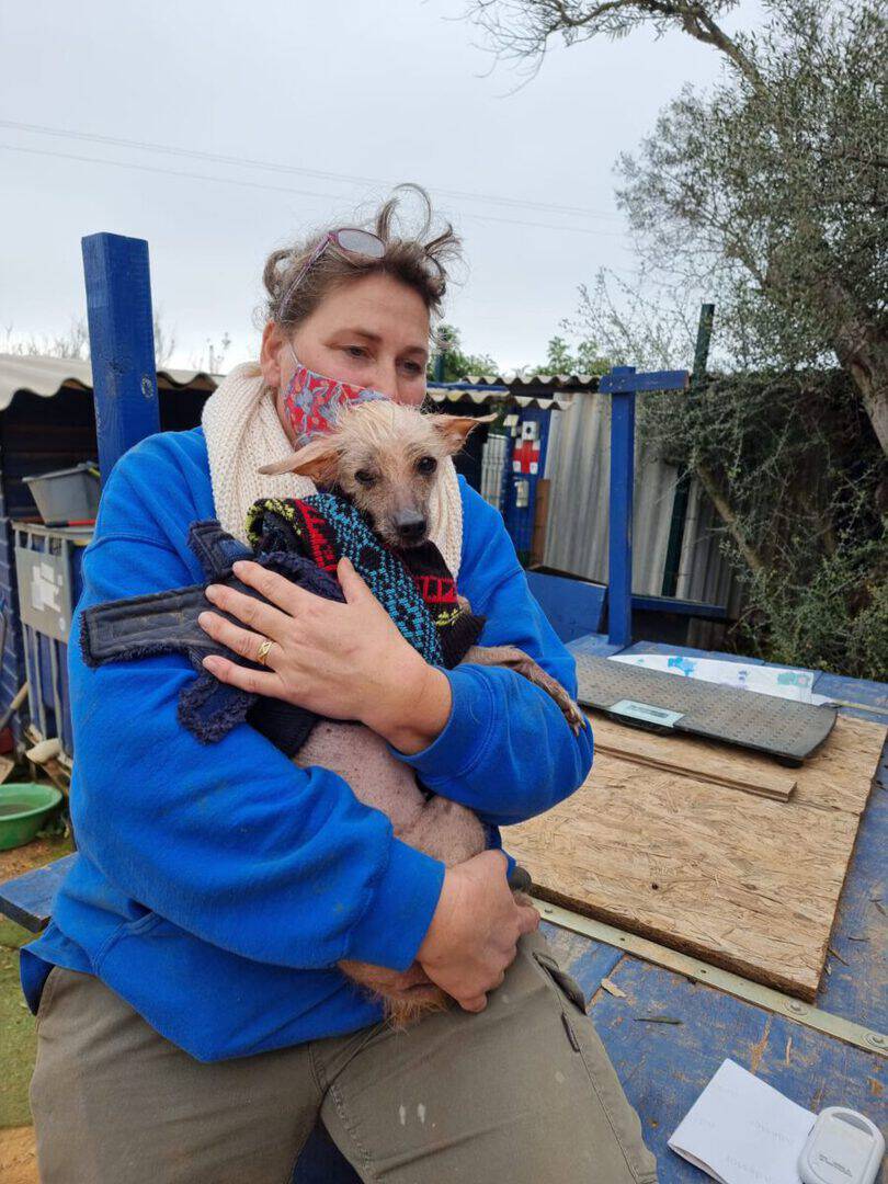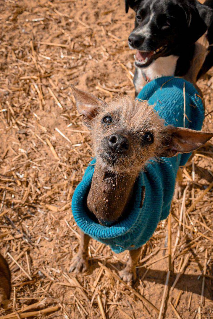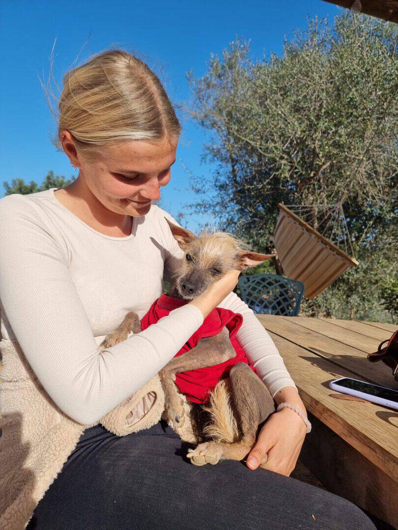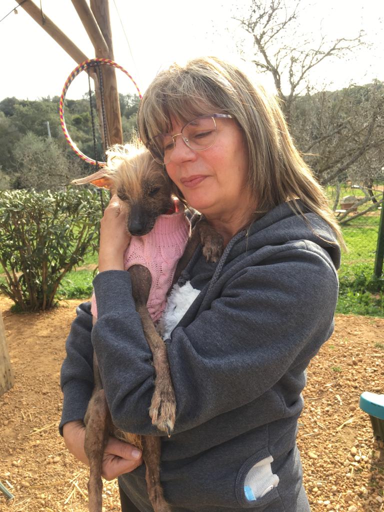 Eine befreundete Tierschützerin hatte die kleine Merle (bereits vermittelt) in einem Sinti-Camp entdeckt und in den PLACE for STRAYS gebracht. Doch diesmal war es ein Fall von “aus eins mach zwei” und so hatte sich auch die arme Gladys – ein Chinesischer Schopfhund – mit ins Auto geschmuggelt. Voller Flöhe, verängstigt und zitternd überraschte sie uns an Weihnachten im Shelter. Doch schon nach den ersten Tagen zeigt sie sich mehr und mehr von ihrer lieben Seite.