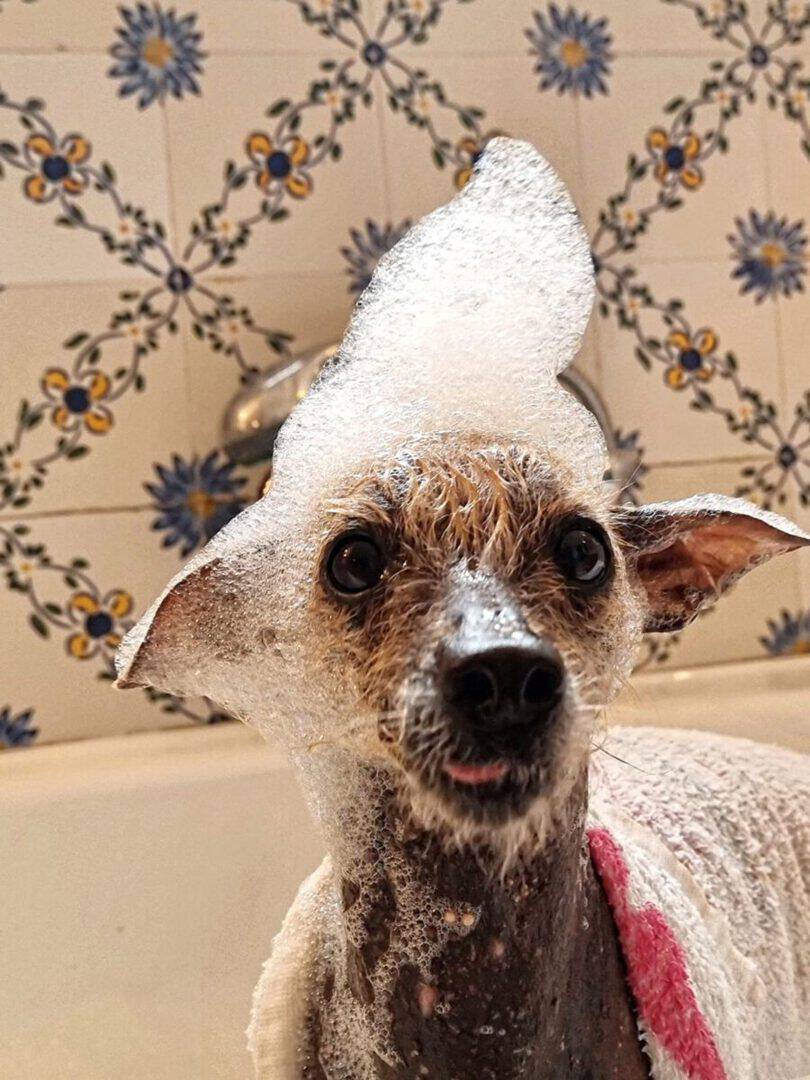 Unsere Gladys ist eine ganz besondere Hundedame: Sie sieht nicht nur einzigartig aus, sondern bringt uns mit ihrer lustigen Art auch ständig zum Lachen und hat sich bereits einen Namen als “Prinzessin auf der Erbse” gemacht.