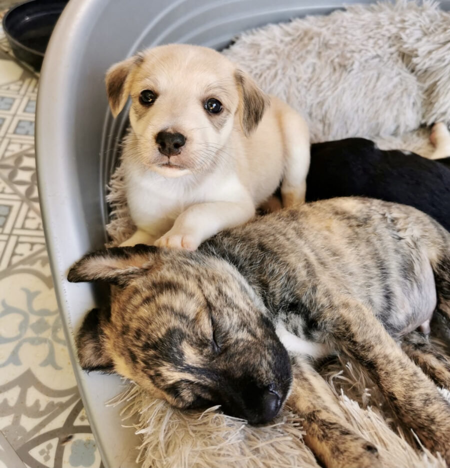 Wir erhielten wieder einmal einen Hilferuf von einer engagierten Tierschützerin, die Nikita und ihre neugeborenen Welpen in einem Zigeunerlager im Dreck liegen sah. Damit diese Hündin nicht weitere Würfe auf die Welt bringen muss und die Welpen nicht einem Leben in Angst, Krankheit und Gefahr auf der Straße ausgesetzt sind, nahmen wir die kleine Familie bei uns im PLACE for STRAYS auf. Hier kümmern wir uns nun liebevoll um Nikita und ihre Kleinen, so auch um die kleine Hannelore.