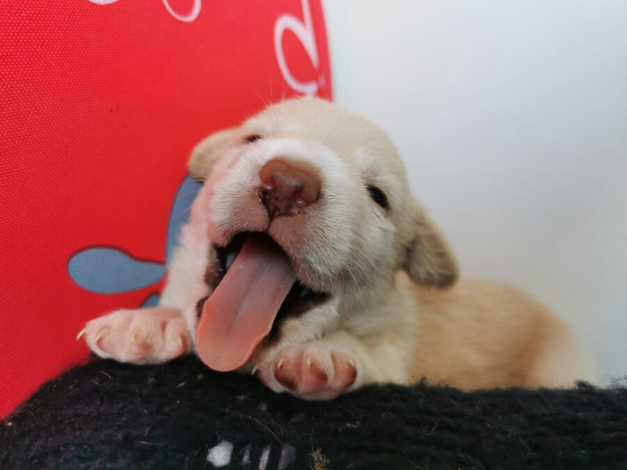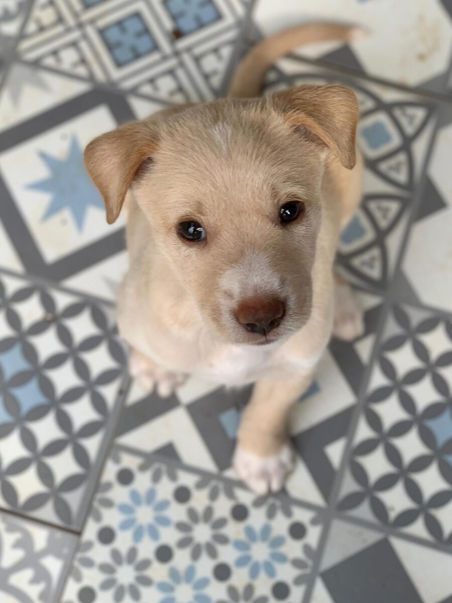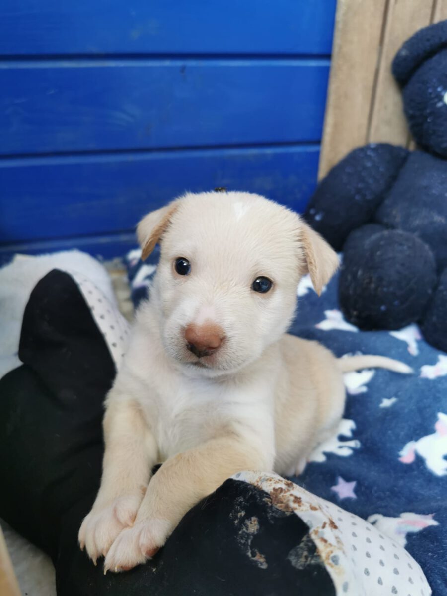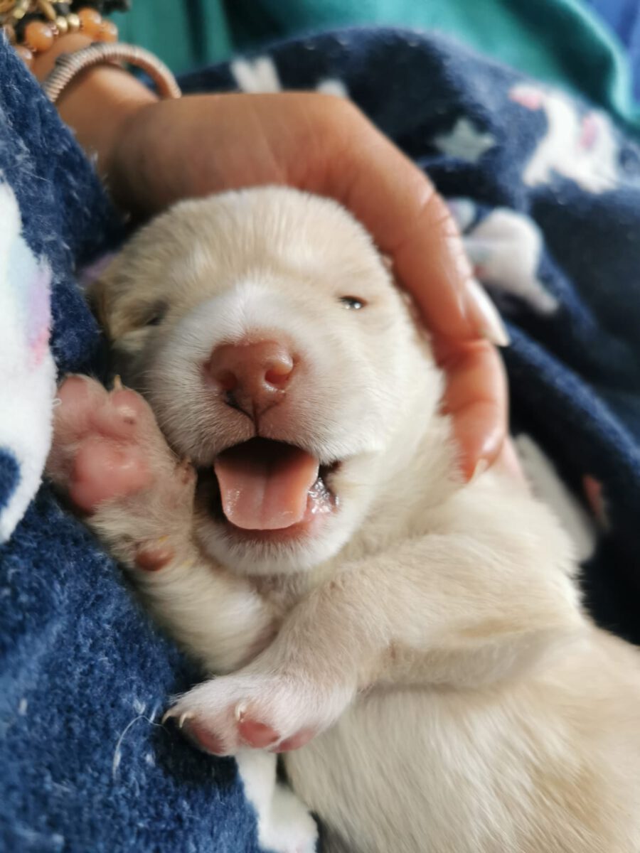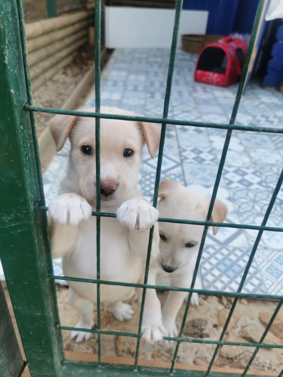 One lunchtime we received sad news: A pregnant bitch from the city shelter had to be euthanized due to complications during the birth of her 7 puppies. The last puppy seemed to be stuck, which led to a fatal infection in the puppy mum. Unfortunately, we don’t know any more. Since the public animal shelter could not find a surrogate mother for the newborns to take in, they were forced to euthanize the puppies. A committed member of the animal welfare organization Pata Ativa did not want to allow this, however, and quickly packed the little ones. However, since she cannot take care of all 7 at the same time, we were asked for help and so it happened that 3 small, newly born puppies were in our care. Our volunteers give everything to nurture the little ones and raise them with bottles. Unfortunately the smallest and weakest of the litter didn’t make it and died. The other two drink hard and put on a bit of weight every day, which gives us hope that they will make it. One of these two puppies is Hansel.