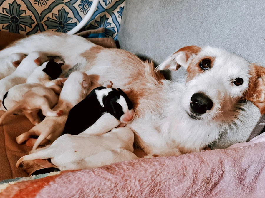 In an exhausting rescue operation by our animal welfare organization PATA ATIVA and SEPNA, it was possible to save the pregnant Honey-Feline from having to give birth to her pups on the street. And since we have slowly developed into specialists for expectant mother dogs and puppy rearing, we have been asked for help again – and of course we are very happy to help! After her rescue, she was brought to Algarvet by Pata Ativa and handed over to us.