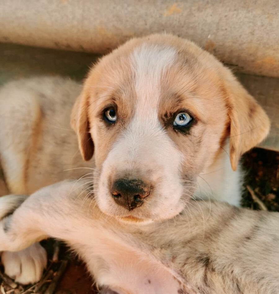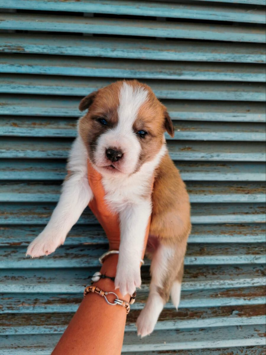 The dog Gala lived together with her mother Amora and her sister Shenzi on the street or near houses. Dear residents fed them, but could not take them in the house. They searched for help for a long time and found none. By a happy coincidence they came into contact with our helper Claudia and so we took the three dogs in with us. Unfortunately we came too late because Gala and her sister were pregnant. On February 26th, 2021 Gala gave birth to 10 healthy puppies. One of them is Layla.