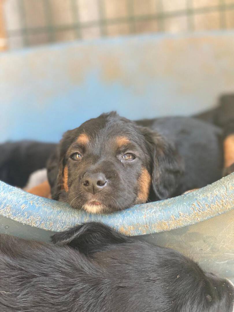 Lenny wurde mit seinen 4 Geschwistern in einem Karton im Müll gefunden. Zunächst waren alle Welpen fit und genossen ihr neues Leben. Dann wurde zu unserem Entsetzen eines morgens Faro tot aufgefunden, ohne dass es Anzeichen einer Krankheit gegeben hatte. Daraufhin haben wir alle Welpen gründlich untersuchen lassen. An den darauffolgenden Tagen zeigten sich leider deutliche Symptome bei den anderen Welpen. Die Bluttests ergaben, dass die Kleinen am Parvovirus erkrankt waren, der für Welpen oft tödlich ist. Lenny musste einige Tage in der Tierklinik behandelt werden. Zum Glück konnten wir das Leben aller weiteren Welpen retten.