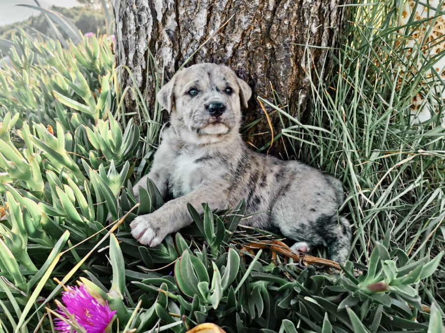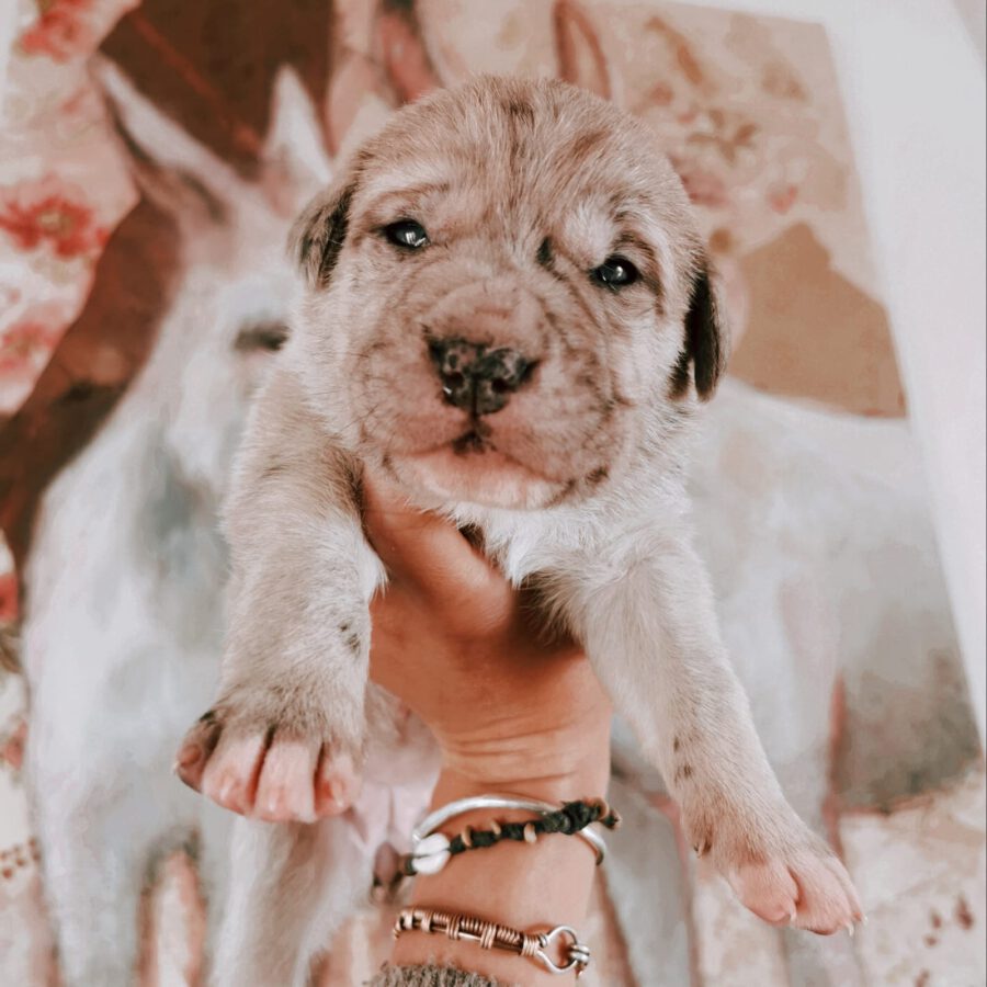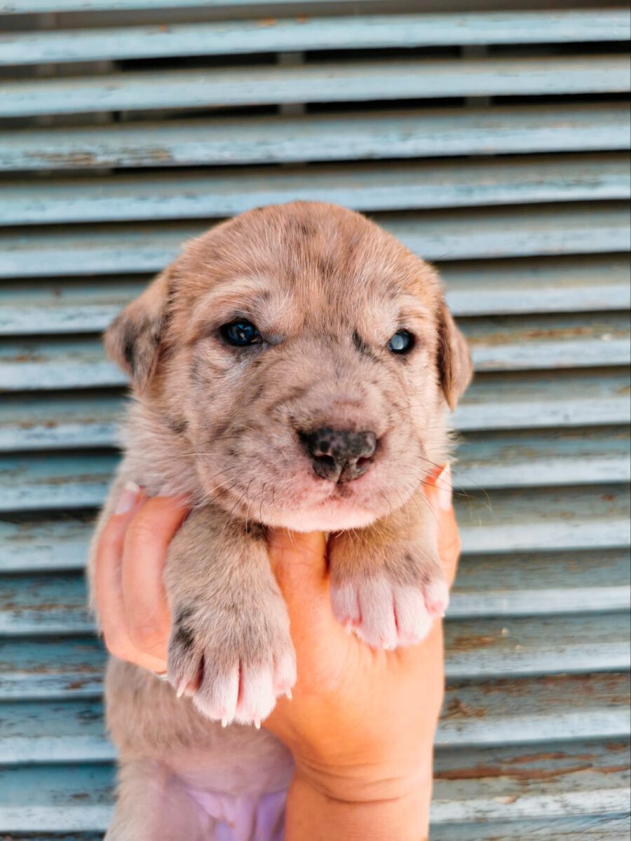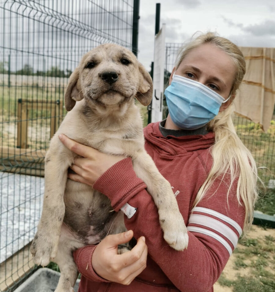 The dog Shenzi lived together with her mother Amora and her sister Gala on the street or near houses. Dear residents fed them, but could not take them in the house. They searched for help for a long time and found none. By a happy coincidence they came into contact with our helper Claudia and so we took the three dogs in with us. Unfortunately we came too late because Shenzi and her sister were pregnant. On February 17th, 2021 Shenzi gave birth to 7 healthy puppies. One of them is Lilo.