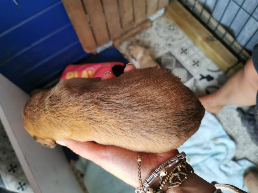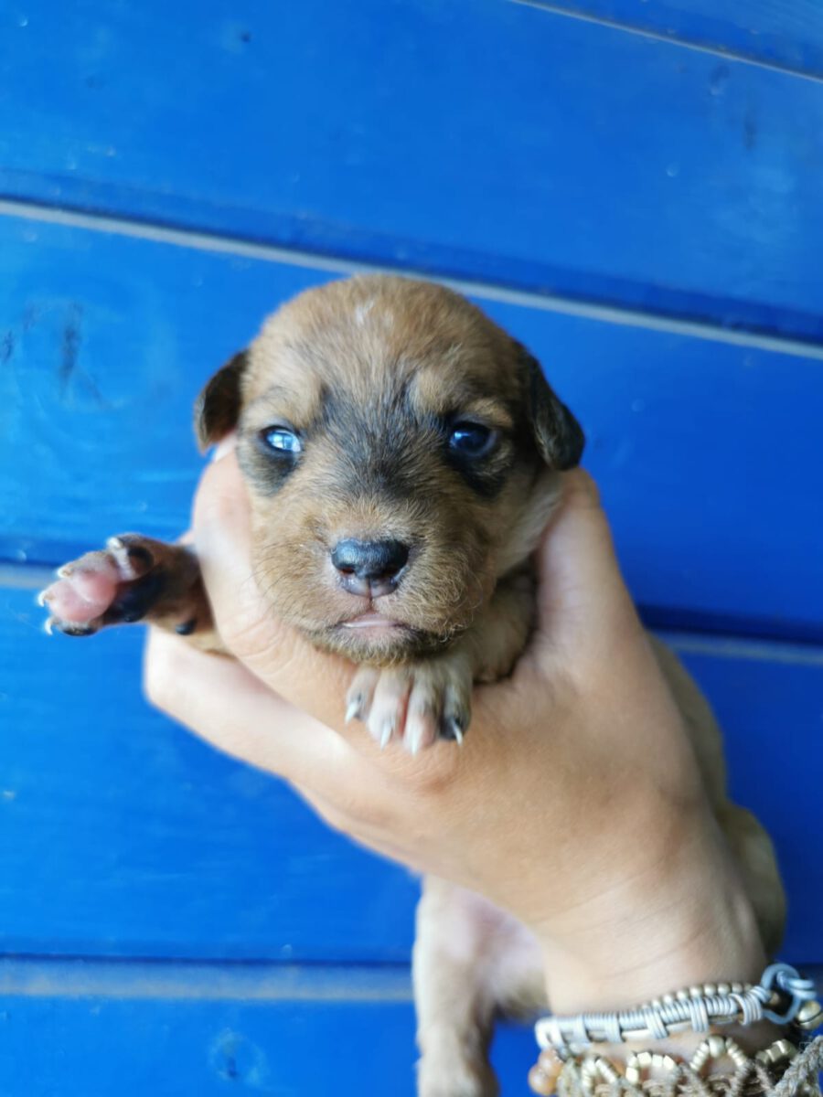 Wir erhielten wieder einmal einen Hilferuf von einer engagierten Tierschützerin, die Nikita und ihre neugeborenen Welpen in einem Zigeunerlager im Dreck liegen sah. Damit diese Hündin nicht weitere Würfe auf die Welt bringen muss und die Welpen nicht einem Leben in Angst, Krankheit und Gefahr auf der Straße ausgesetzt sind, nahmen wir die kleine Familie bei uns im PLACE for STRAYS auf. Hier kümmern wir uns nun liebevoll um Nikita und ihre Kleinen, so auch um die kleine Lotta.
