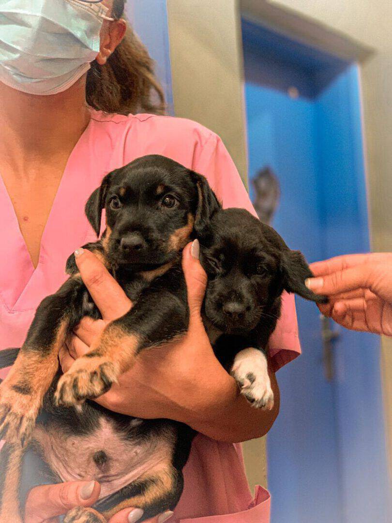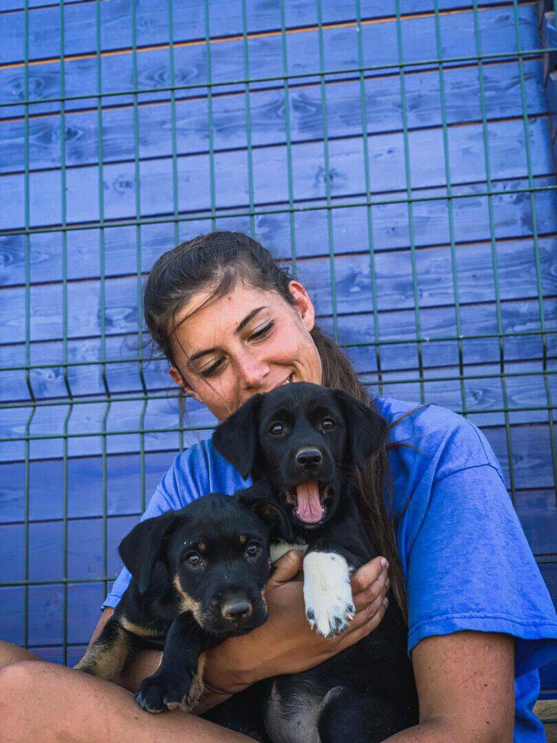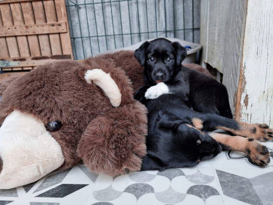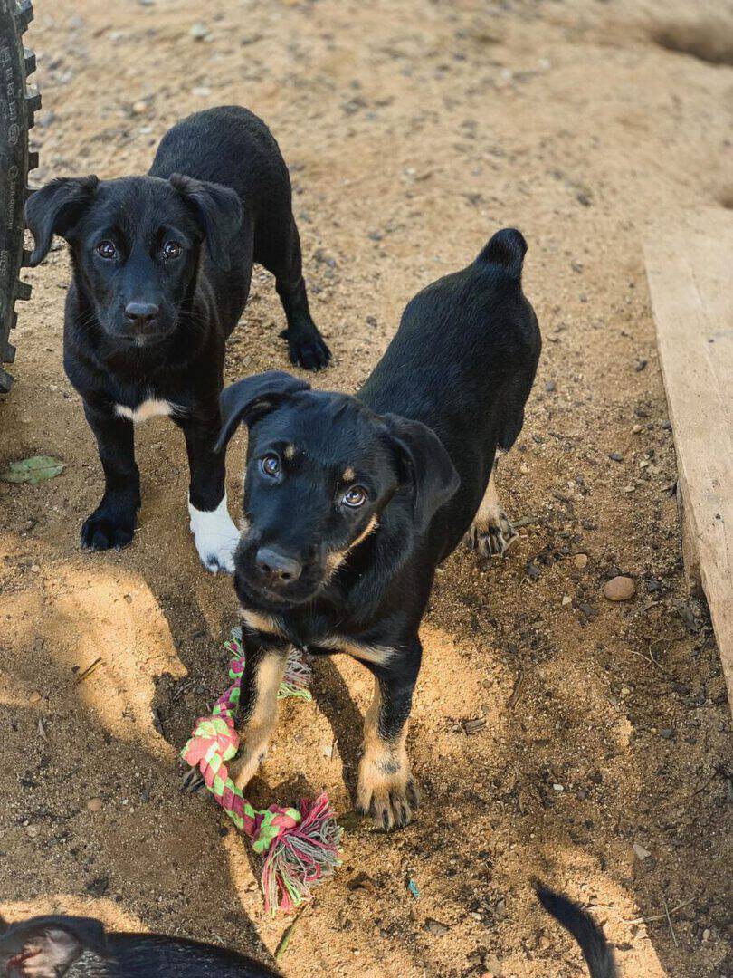 Wieder einmal konnten wir zwei verwaiste Welpen bei uns aufnehmen. Wir wurden auf die beiden durch eine befreundete Tierschützerin aufmerksam, die uns um Unterstützung gebeten hatte. Die beiden waren bereits eine Woche in einer Tierklinik, um vorsorglich gegen den verbreiteten Parvo-Virus behandelt zu werden. Nach der routinemäßigen Quarantäne in der Roten Kreuz-Station zogen sie zu Ginnys Welpen, wo sie liebevoll aufgenommen wurden und sich hervorragend mit den anderen kleinen Fellnasen verstehen. Nun lernen sie kontinuierlich auch die erwachsenen Hunde unseres Rudels kennen.