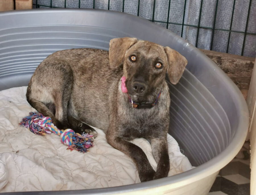 Kurz nachdem unser lieber Bernie ausreisen konnten, erhielten wir wie durch Zufall nur einen Tag später einen neuen Hilferuf von Bernies damaliger Retterin. Wieder hatte sie eine vernachlässigte Hündin und ihre neugeborenen Welpen an der gleichen Stelle im Dreck liegen entdeckt, an der sie auch Bernie gefunden hatte. Noch am selben Tag fuhr Elena zu dem Ort, um die schutzlose Familie in unsere Obhut zu nehmen.