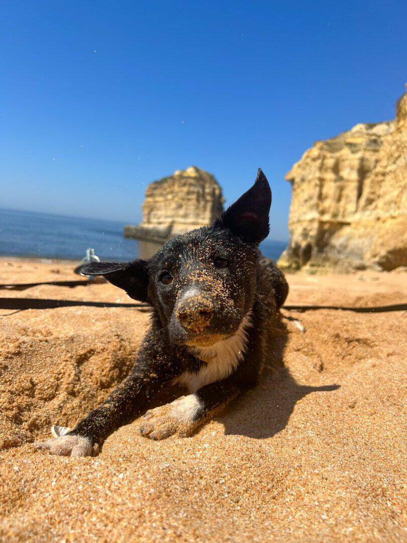 Bei einem Strand-Ausflug hat man gemerkt wie sehr sich Noel in den letzten Wochen weiterentwickelt hat. Er achtet nun viel mehr auf den Menschen, fährt im Auto mit und sogar beim Klettern zum Strandabschnitt hat er sich vorbildlich tragen lassen. Noel liebt Wasser und hat sich nach einer kurzen Unsicherheit ins Meer gestürzt. Das Rennen mit den anderen Hunden, das gemeinsame Dösen im Schatten und die ein oder andere Spieleinheit haben es auf jeden Fall zu einem Highlight Tag für Noel gemacht. Er ist definitiv ein kleiner Abenteurer. Doch mittlerweile ist er auch ein liebenswerter Kuschelbär geworden und wenn man sich ihn auf den Schoß nimmt, genießt er es schon dort das ein oder andere Schläfchen zu machen.