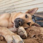 An genau dieselbe Stelle, an der wir einst Hündin Zoey und ihre Welpen retteten, wurden wir nun erneut von Anwohnern gerufen. Sie berichteten, dass vor etwa einem Monat eine Hündin auf dem verlassenen Grundstück aufgetaucht war, die in einer der Ruinen ihre Welpen zur Welt gebracht hatte. Also machte Elena sich auf den Weg, um die junge Familie einzusammeln und in Sicherheit zu bringen. Bei der Rettungsaktion stellte sich schnell heraus, dass die Hündin wohl einst ein Zuhause gehabt haben muss, denn sie ließ sich füttern und berühren. Sie war allerdings nicht gechipt und wurde auch von niemandem vermisst. Wir gehen also davon aus, dass sie auf Grund ihrer Trächtigkeit ausgesetzt wurde.