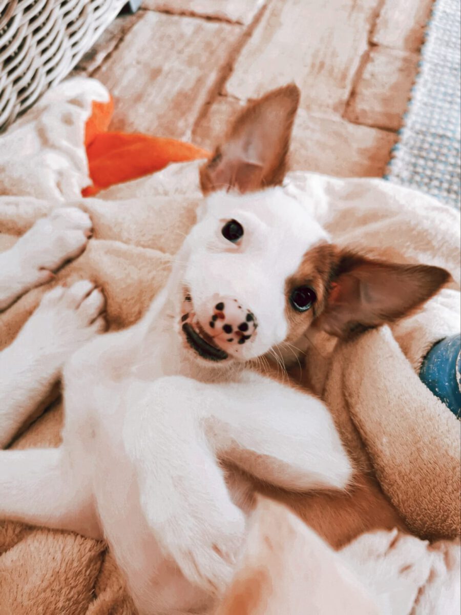 Some time ago Maria and later Fofinha were picked up in the residential area of ​​our helper Anabela. We have been catching two more dogs for some time now. Moises and Alice. Alice probably got pregnant by Moises and could only be picked up by this circumstance, because otherwise they are both very smart and nimble. But finally it worked and we brought her to our helpers Marine and Titiane at home. There Alice was able to finish the birth of her puppies and gave birth to a total of 4 boys and a girl. One of these puppies is PANDA. Both Alice and her puppies did well with us and now it is time we found lovely families for all of them.