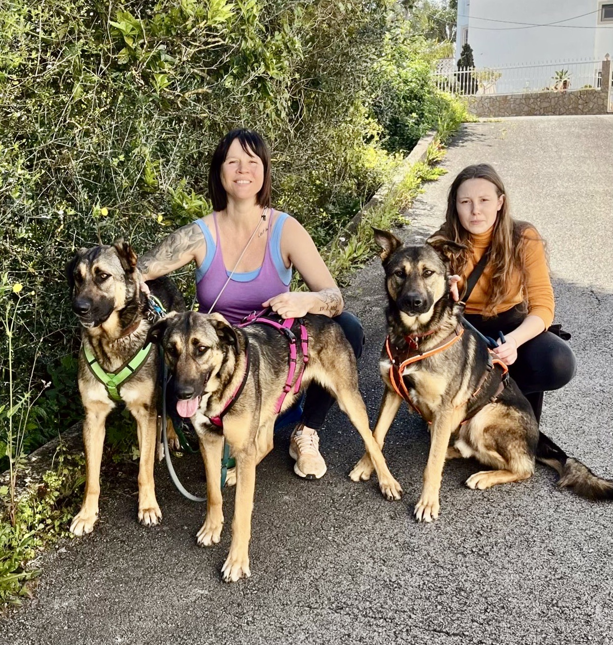 Mit all unseren anderen Hunden verstehen sie sich ebenfalls sehr gut und sind absolut unkompliziert. Sie suchen die Nähe ihrer Shelter-Kumpels und uns Menschen und freuen sich über jede Aufmerksamkeit. Abgesehen davon haben sie eine große Schwäche für Essen und es kann ihnen nicht schnell genug gehen, dass sie ihr Essen bekommen.