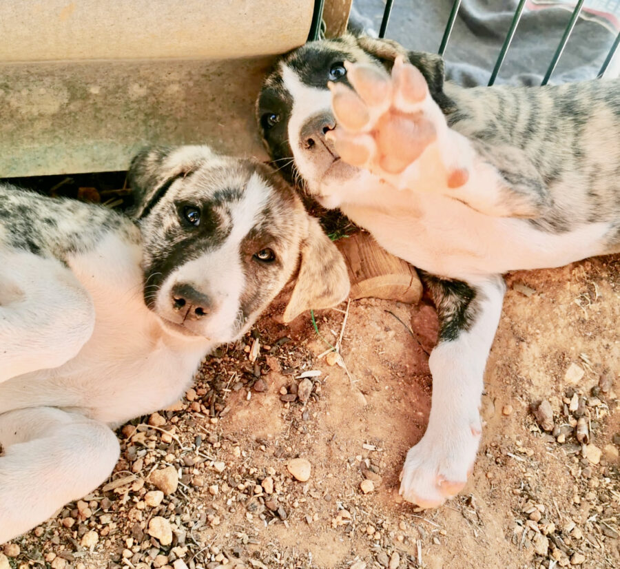 The dog Gala lived together with her mother Amora and her sister Shenzi on the street or near houses. Dear residents fed them, but could not take them in the house. They searched for help for a long time and found none. By a happy coincidence they came into contact with our helper Claudia and so we took the three dogs in with us. Unfortunately we came too late because Gala and her sister were pregnant. On February 26th, 2021 Gala gave birth to 10 healthy puppies. One of them is Pippa.