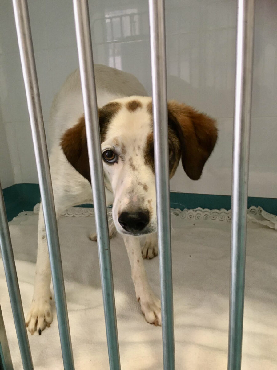 So far, she has shown herself to be super socialized towards dogs in the shelter. She is still a bit suspicious of people, but she is not panicked, just reserved and a little intimidated. We are sure that, with a lot of patience and love, she is willing to learn that the big wide world has so much to offer.