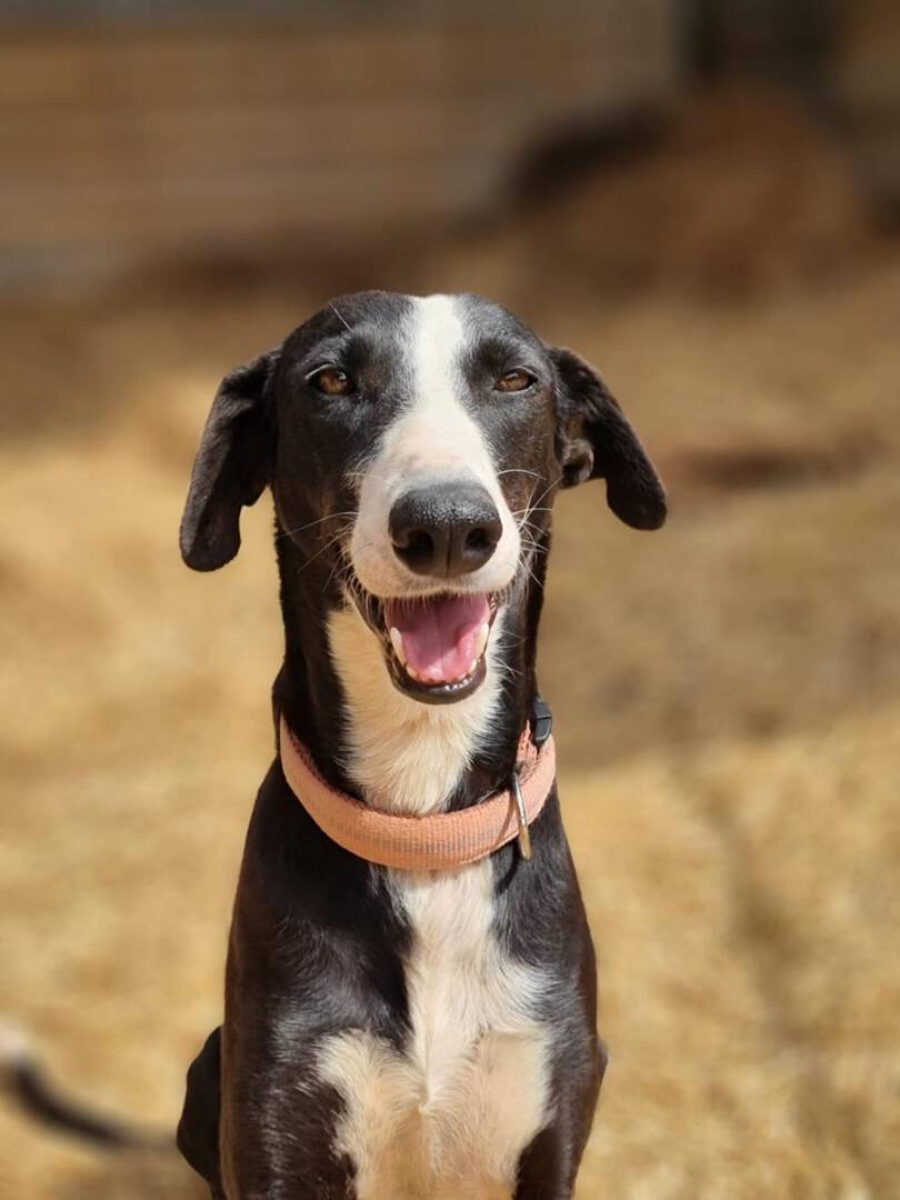 Queen ist einfach eine zuckersüße Maus. Sie hat ein sehr freundliches und liebes Wesen. Bei neuen Menschen braucht sie ein bisschen Zeit um aufzutauen. Manchmal geht es sehr schnell, manchmal ist sie noch eher zurückhaltend. Nachdem sie eine Weile beobachtet hat, dauert es aber nicht lange, bis sie sich anfassen und streicheln lässt. Generell ist sie sehr sozial mit anderen Hunden und versteht sich mit allen. Sie ist inzwischen viel fröhlicher geworden, springt wie ein Schaukelpferd über das Gelände von Place for Strays und liebt lange Spaziergänge. Queen hört schon sehr gut, sie läuft ganz toll an der Leine, Elena kann sie aber auch ohne Leine auf Spaziergänge mitnehmen. Man sieht ihr an, dass sie gerne durch die Gegend flitzt, das genießt sie in vollen Zügen und kann da richtig hochdrehen. Sie bleibt aber immer in der Nähe. Generell ist sie bei neuen, ungewohnten Situationen noch unsicher bis ängstlich, wirkt dann aufgeregt und gestresst, lässt die Situation aber zu. Autofahren ist ihr zum Beispiel noch nicht Geheuer. Auch beispielsweise beim Tierarzt ist sie zwar gestresst, lässt aber alles mit sich machen, obwohl ihr die Situation nicht geheuer ist. Sie blüht immer mehr auf und wird auch gegenüber ganz neuen Menschen immer aufgeschlossener.
