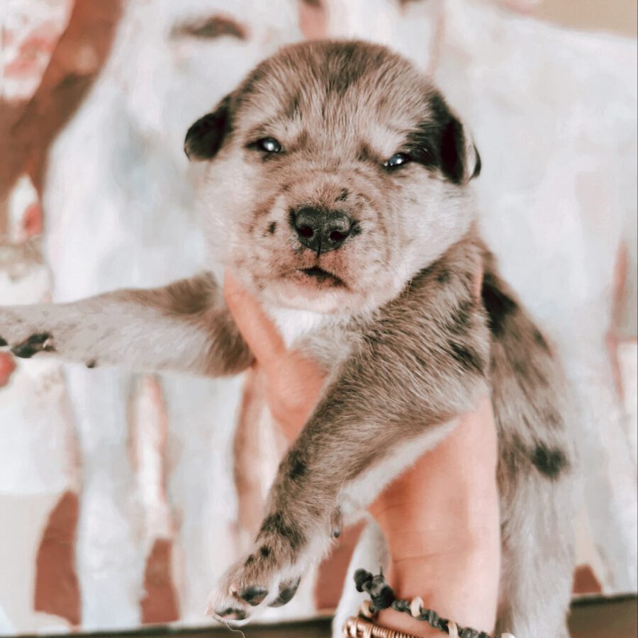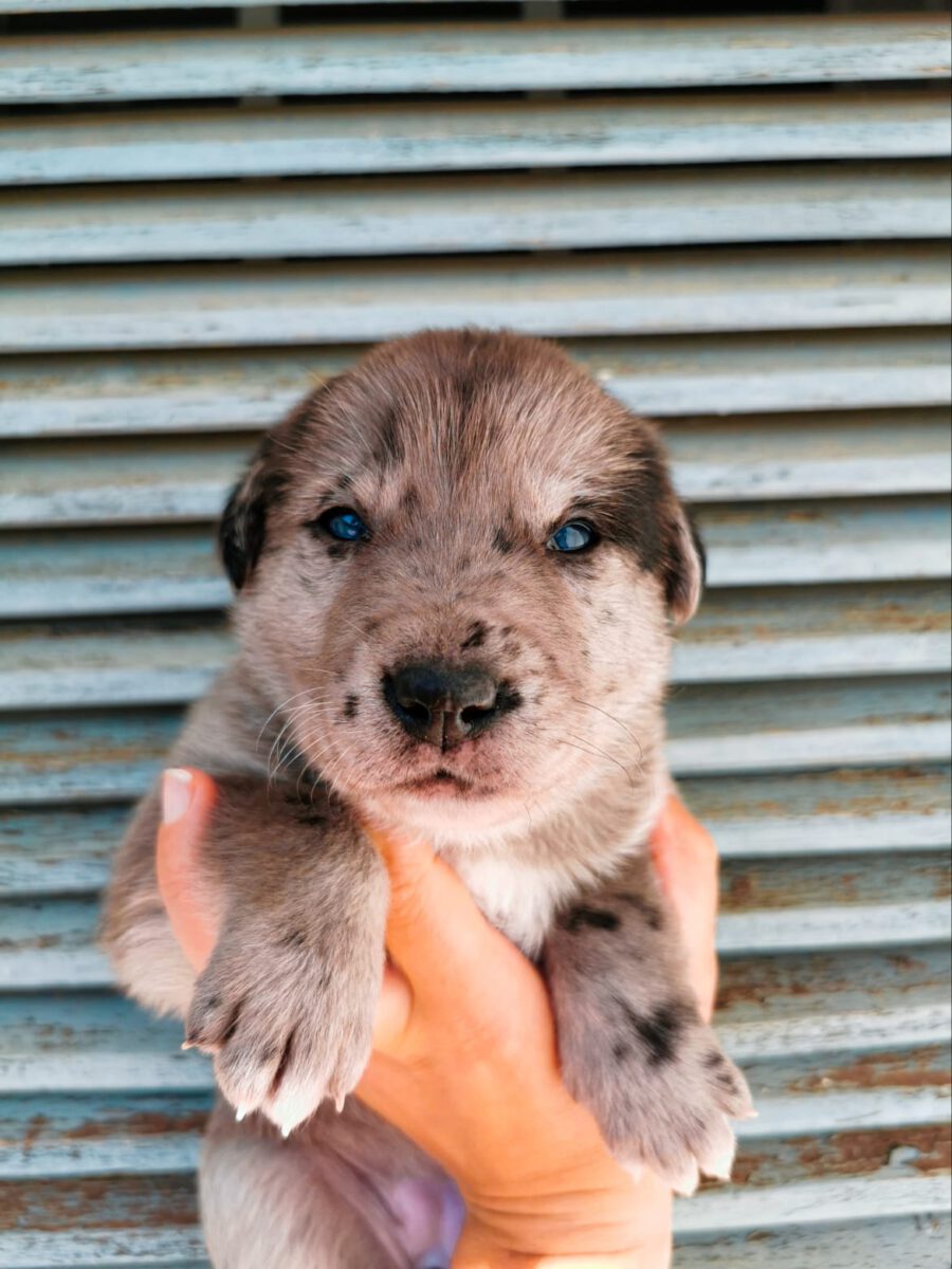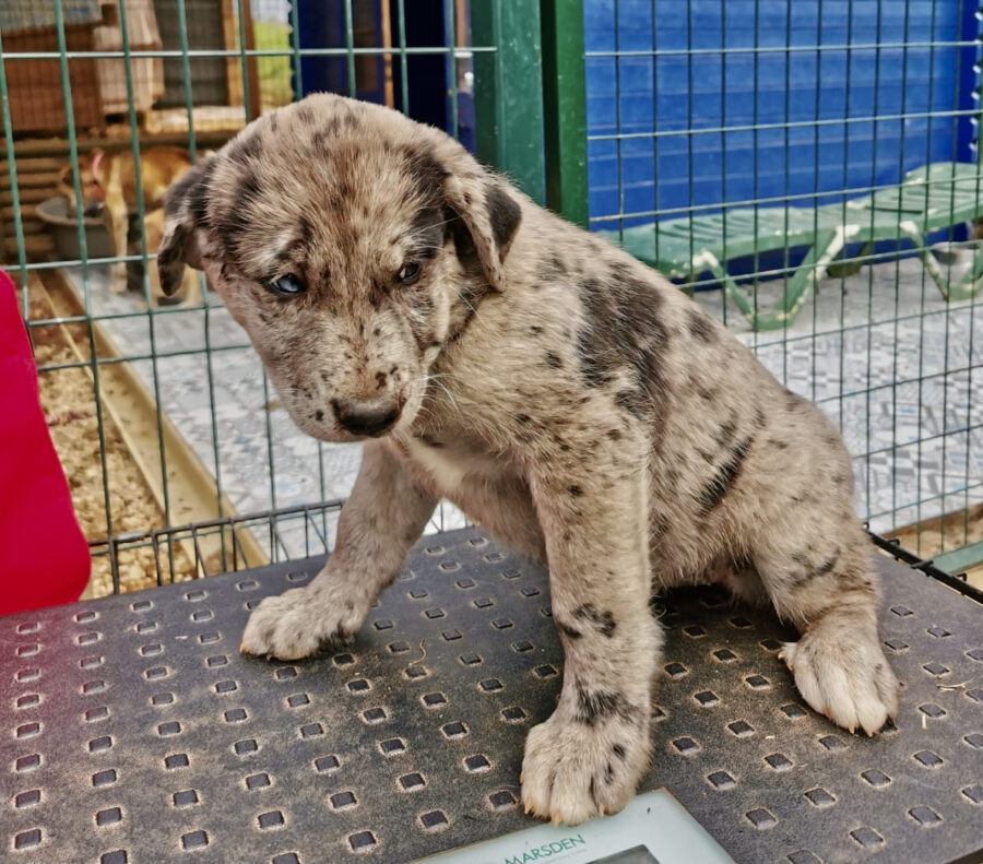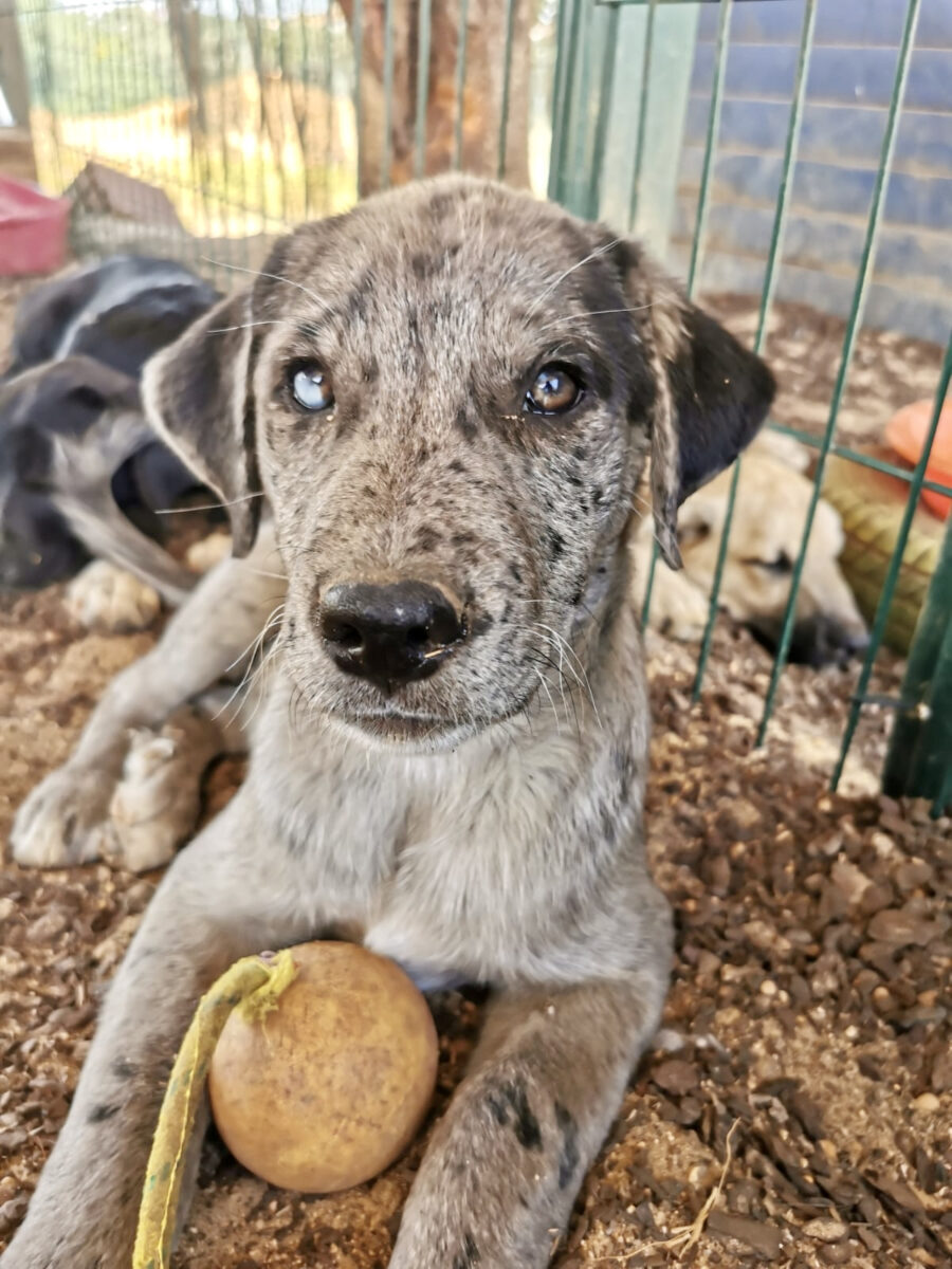 The dog Shenzi lived together with her mother Amora and her sister Gala on the street or near houses. Dear residents fed them, but could not take them in the house. They searched for help for a long time and found none. By a happy coincidence they came into contact with our helper Claudia and so we took the three dogs in with us. Unfortunately we came too late because Shenzi and her sister were pregnant. On February 17th, 2021 Shenzi gave birth to 7 healthy puppies. One of them is Rosie.