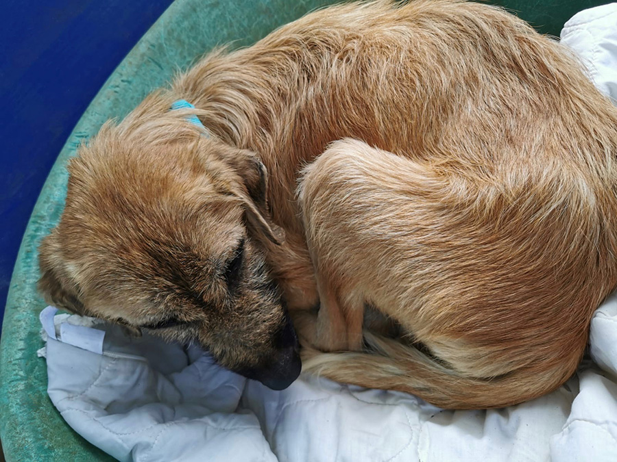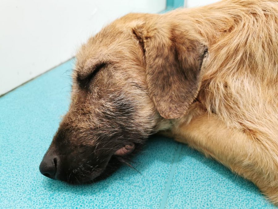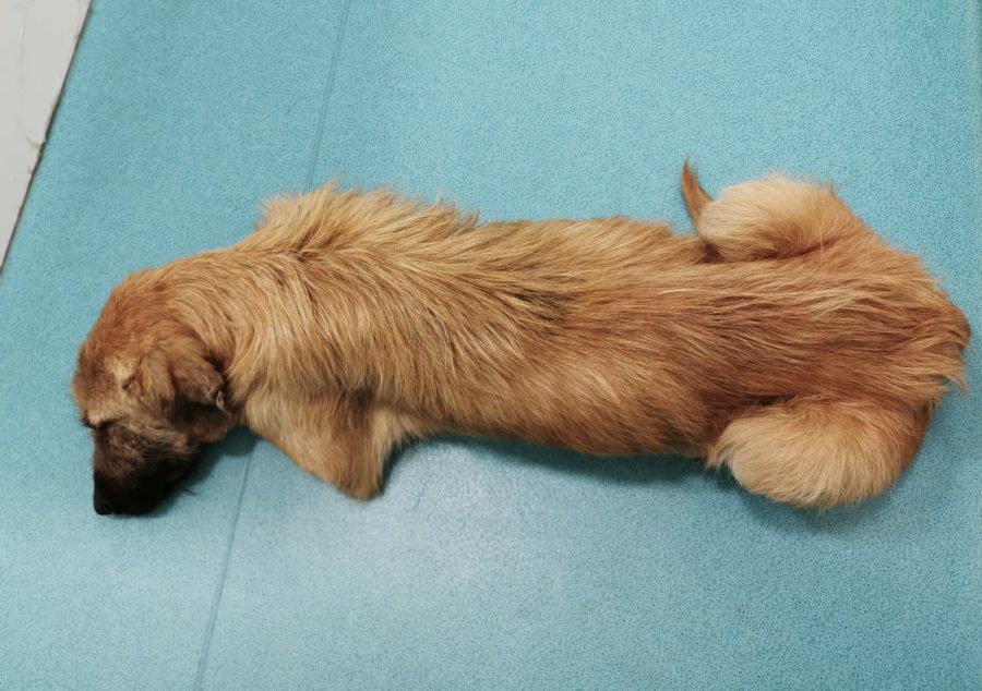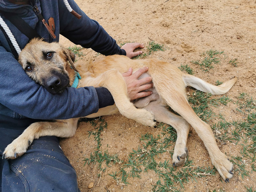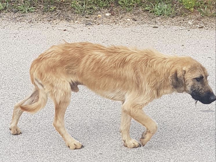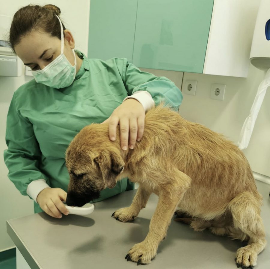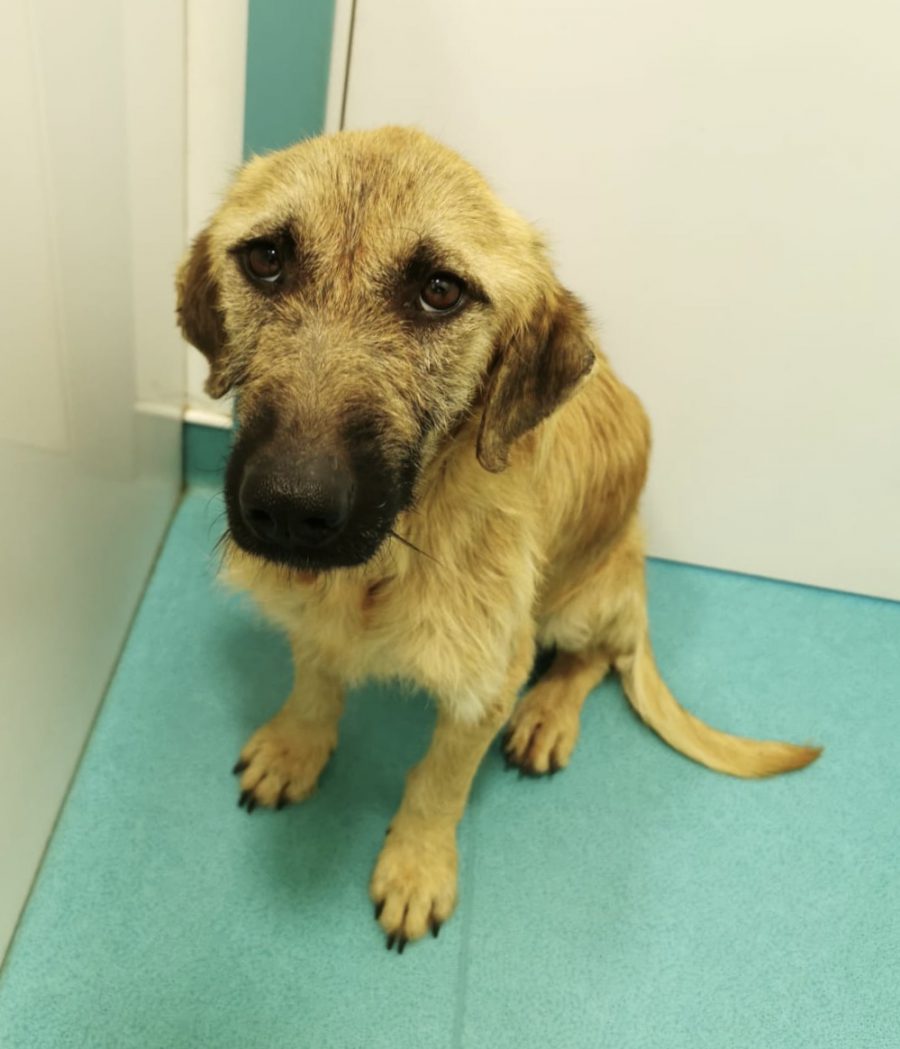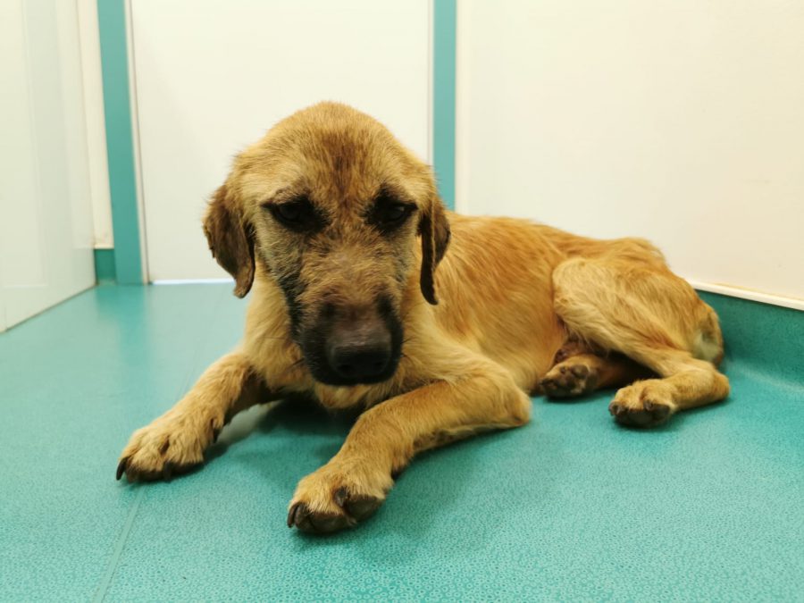 This treasure, weakened by hunger and disease, appeared daily in front of a woman’s house and begged for food. This dear woman did not close her eyes to the suffering of this poor stray dog, but fed him daily and looked for help because her own dogs did not accept the stray dog. Elena caught the poor stray together with the woman and took him straight to the vet. There it turned out that he suffered from tick bite fever, anemia, the terrible heartworms and, to make matters worse, also advanced leishmaniasis.