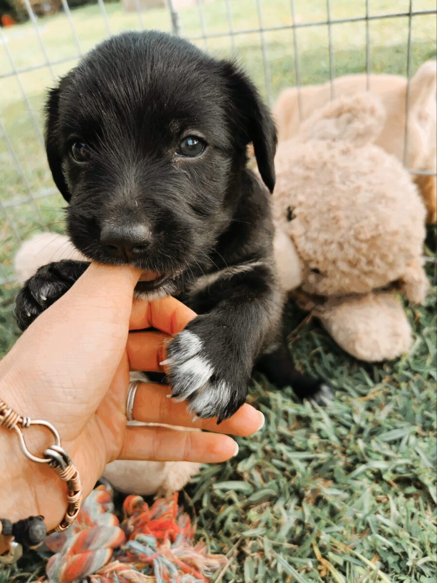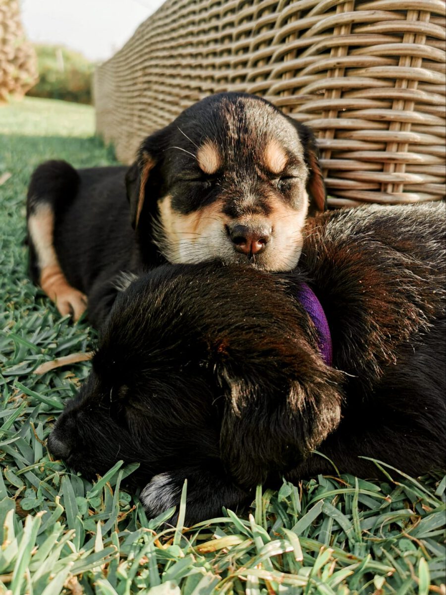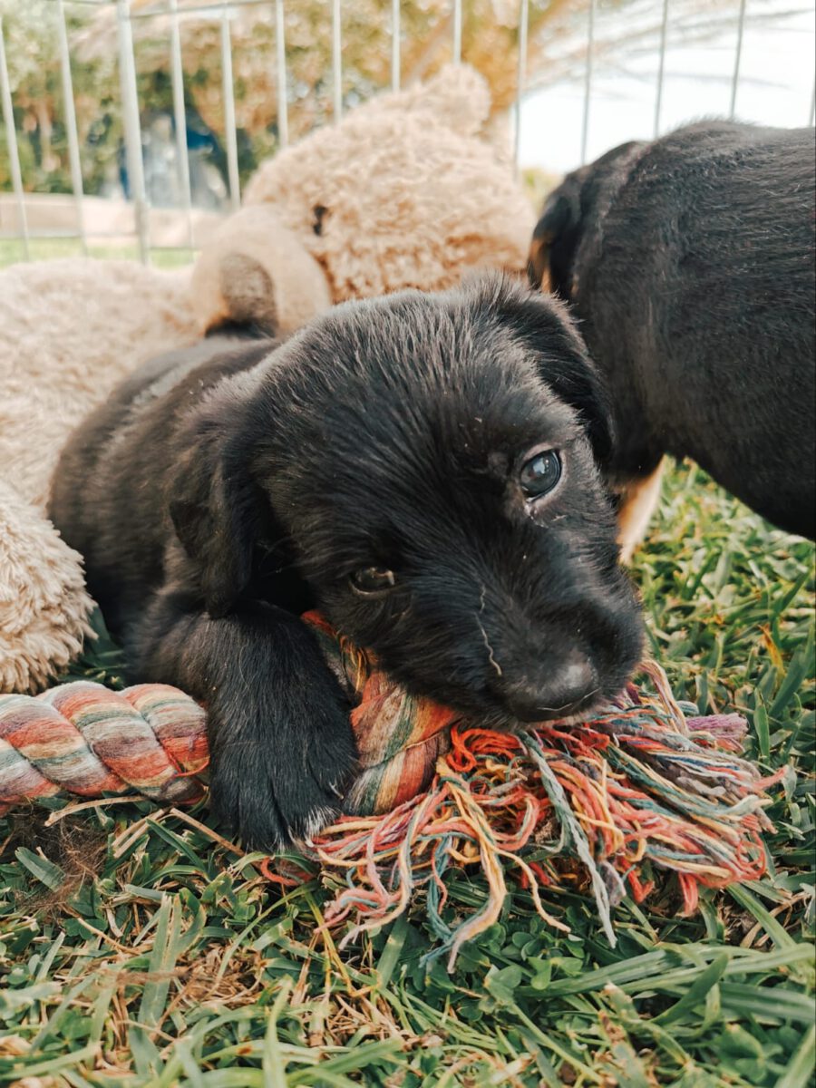 Saphira and Buffy were the most afraid and most suspicious of us humans when they were rescued. At their foster home with Elena, however, they were able to quickly learn that they no longer have anything bad to fear from us humans. The wounds on their tails (which were simply clumsy and so incomprehensibly cut off after the birth!) Have now healed and they are also becoming more trusting and, as is typical for puppies, always cheeky. Only when you hear loud noises do you notice that they are a little more scared than puppies who have not had these bad experiences. Visually, Saphira is developing more and more to the image of her mum Dorie. She is just as wonderfully shaggy. In the beginning she was one of the most suspicious puppies, now she is trusting and quite adventurous. If no one wants to take part, she can play well on her own.