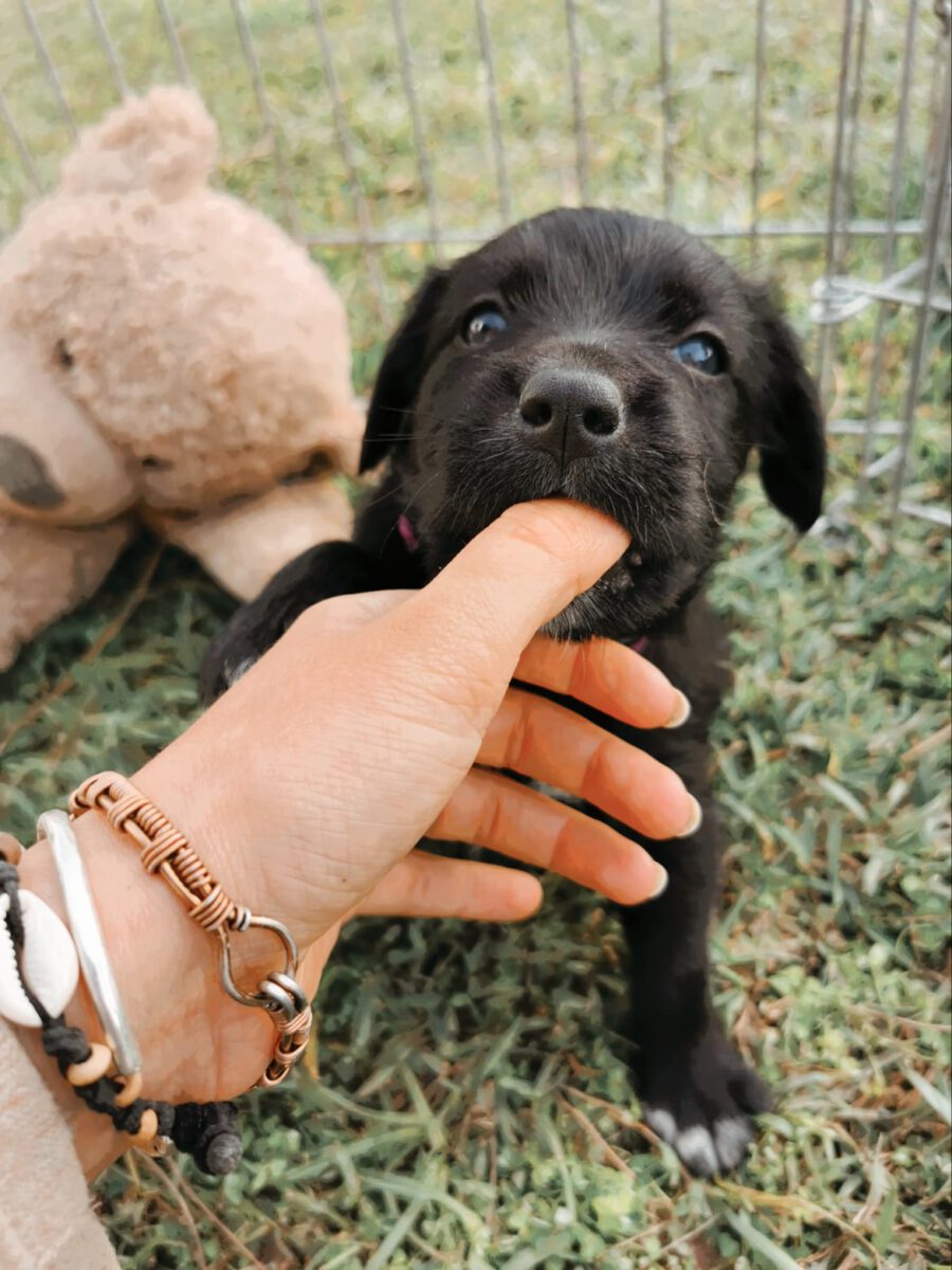 Saphira, her mum Dorie and her 5 siblings (Amy, Buffy, Bruno, Kylie and Teddy) come from a gypsy camp. Unfortunately, the dogs are usually not doing well there. And so it was with this small family of dogs. They lived under a wrecked car. The little ones’ tails had even been cut off. Fortunately, a dear woman became aware of her and came to us for help. She and Elena finally managed to get the whole family off and so they moved in with us at the Place for Strays.