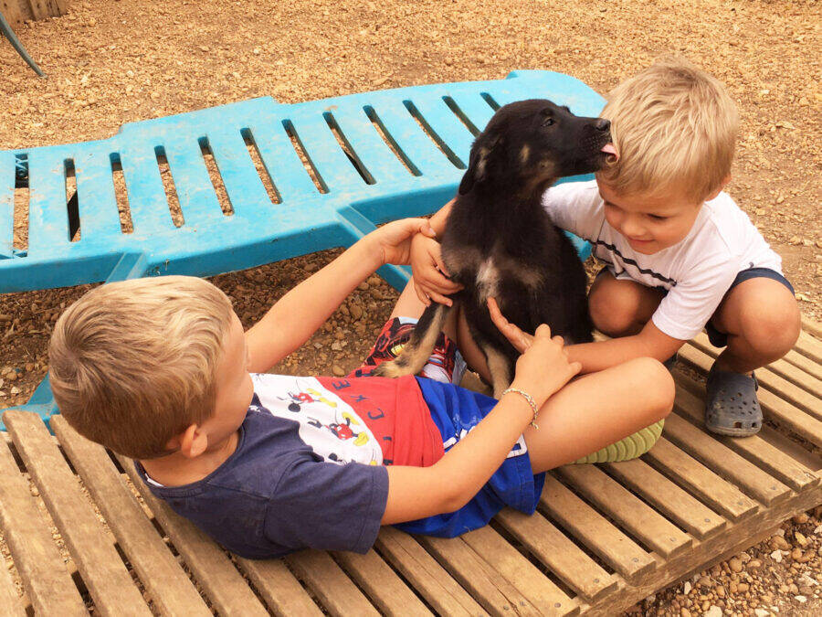 Und wieder einmal gibt es zwei neue Fellnasen in der PfS-Familie. Zwei süße Welpen-Mädchen wurden einfach mitten in der Nacht vor unserem Gelände ausgesetzt – eine davon ist Sissi. Anscheinend nicht länger erwünscht, wurden sie einfach ihrem Schicksal überlassen! Als wir sie gefunden und aufgenommen hatten, wurden die zwei Kleinen dann auch gleich entwurmt und man konnte direkt sehen, dass das mehr als notwendig war! Ihre kleinen Bäuche waren schon voller Würmer. Nach der Entwurmung konnte man dann auch sehen, dass vor allem Sissy sehr dünn war. Leider haben beide dann auch schlimmen Durchfall bekommen und als der erste Test auf das gemeine Parvo-Virus nicht eindeutig negativ war, war klar, dass die beiden sicherheitshalber in die Tierklinik müssen. Dort haben sie das Personal über Nacht ganz schön auf Trab gehalten (Schläuche durchkauen, lautes Beschweren), aber wir sind einfach nur froh, dass es ihnen gleich besser ging. Ein weiterer Test auf Parvo war dann auch negativ und die kleinen Mäuse konnten jetzt wieder bei uns einziehen. Für die süße Sissi war es schnell wieder an der Zeit ihre Koffer zu packen, denn sie fand ihr ganz großes Glück in unserer Tierärztin und deren Familie.