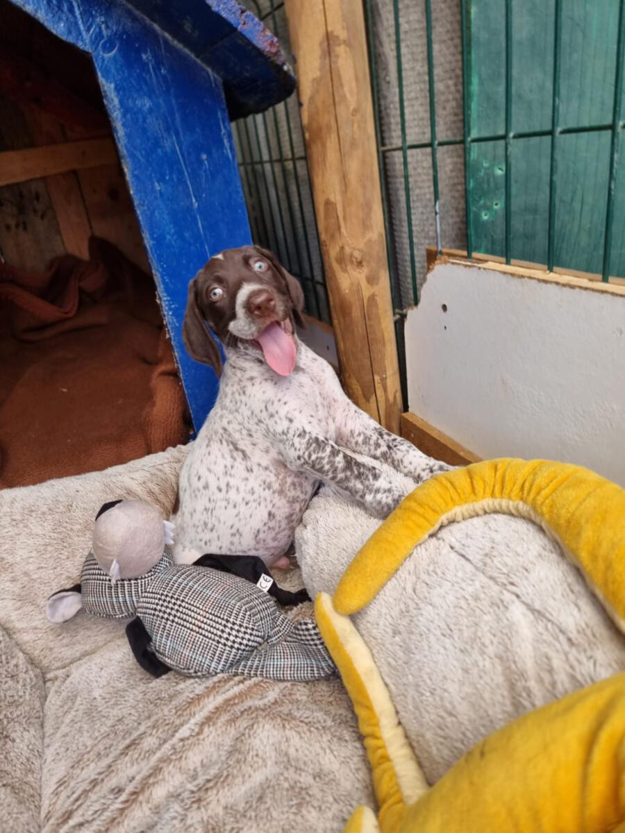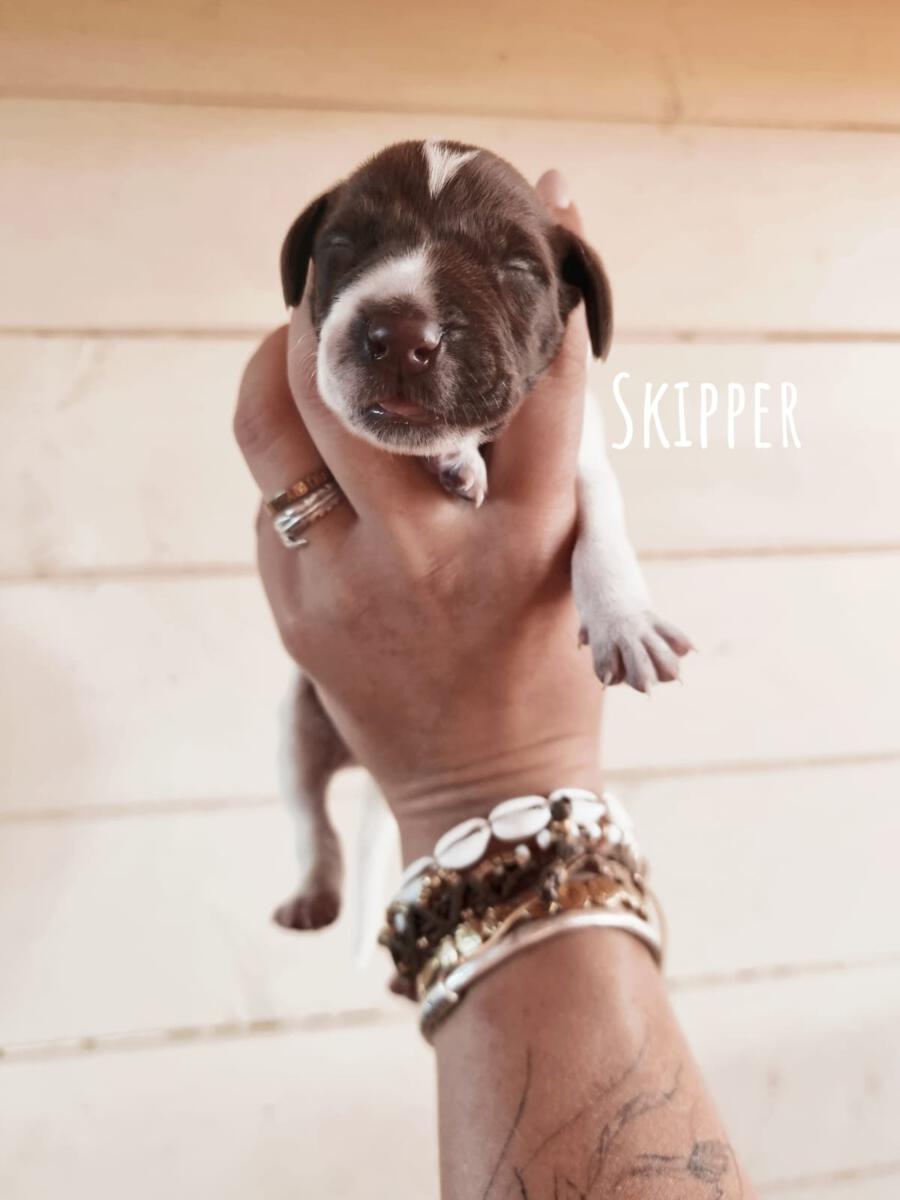 Skipper lebt aktuell noch in der Schweiz auf seiner Pflegestelle. Er läuft bereits gut an der Leine, was dem Alter entsprechend noch gefestigt werden muss. Trotz wachsendem Jagdtrieb ist er noch sehr gut ansprechbar und abrufbar. Auch hier muss natürlich weiter dran gearbeitet werden. Er ist für seine Rasse und Alter ein eher ruhiger Charakter. Kommt im Haus gut zur Ruhe, selbst bei Besuch oder zu Besuch an einem fremden Ort. Auch draußen ist er weder überdreht noch nervös. In neuen Situationen ist er eher vorsichtig und teilweise etwas unsicher. Orientiert sich aber sehr gut an seiner Bezugsperson. Skipper hat eine sehr enge Bindung zu seiner Bezugsperson. Dadurch orientiert er sich sehr stark an seinem Menschen. In der Hundetagesstätte vor Ort kommt er mit den anderen Hunden soweit gut zurecht, trägt aber in der Gruppe einen Maulkorb da er sich mit 1-2 anderen Rüden (mit einem davon lebt er zusammen) nicht versteht und sonst auf dumme Ideen kommt. Dennoch provoziert er seinen Mitbewohner noch immer recht gerne und soll daher nur in ein zu Hause als Einzelhund oder mit einer souveränen Hündin vermittelt werden. Mit der Hündin seiner Pflegestelle versteht er sich gut und akzeptiert auch ihre Zurechtweisungen.