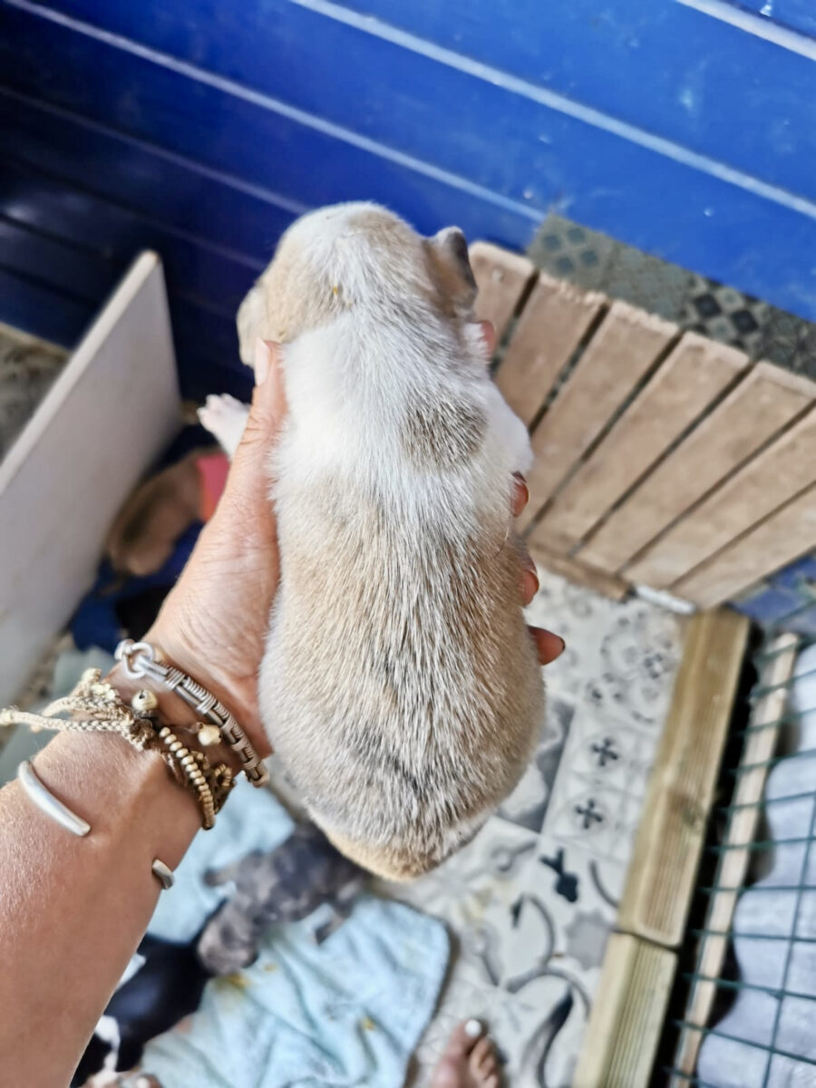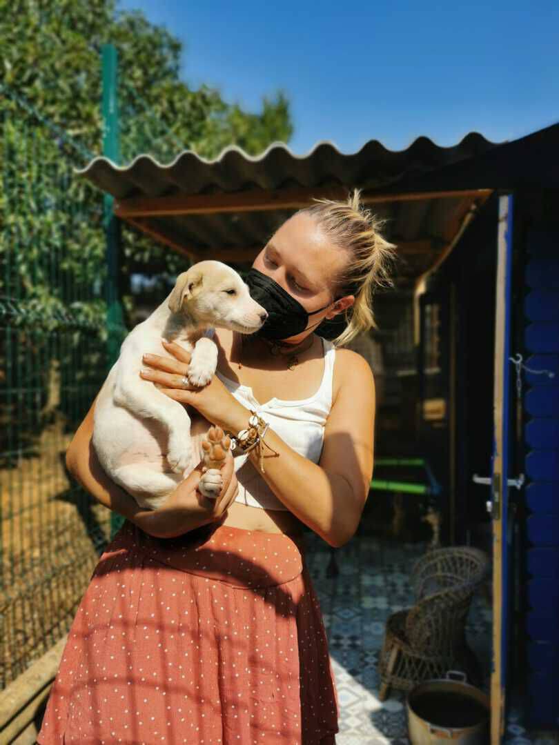 Wir erhielten wieder einmal einen Hilferuf von einer engagierten Tierschützerin, die Nikita und ihre neugeborenen Welpen in einem Zigeunerlager im Dreck liegen sah. Damit diese Hündin nicht weitere Würfe auf die Welt bringen muss und die Welpen nicht einem Leben in Angst, Krankheit und Gefahr auf der Straße ausgesetzt sind, nahmen wir die kleine Familie bei uns im PLACE for STRAYS auf. Hier kümmern wir uns nun liebevoll um Nikita und ihre Kleinen, so auch um die kleine Stella.