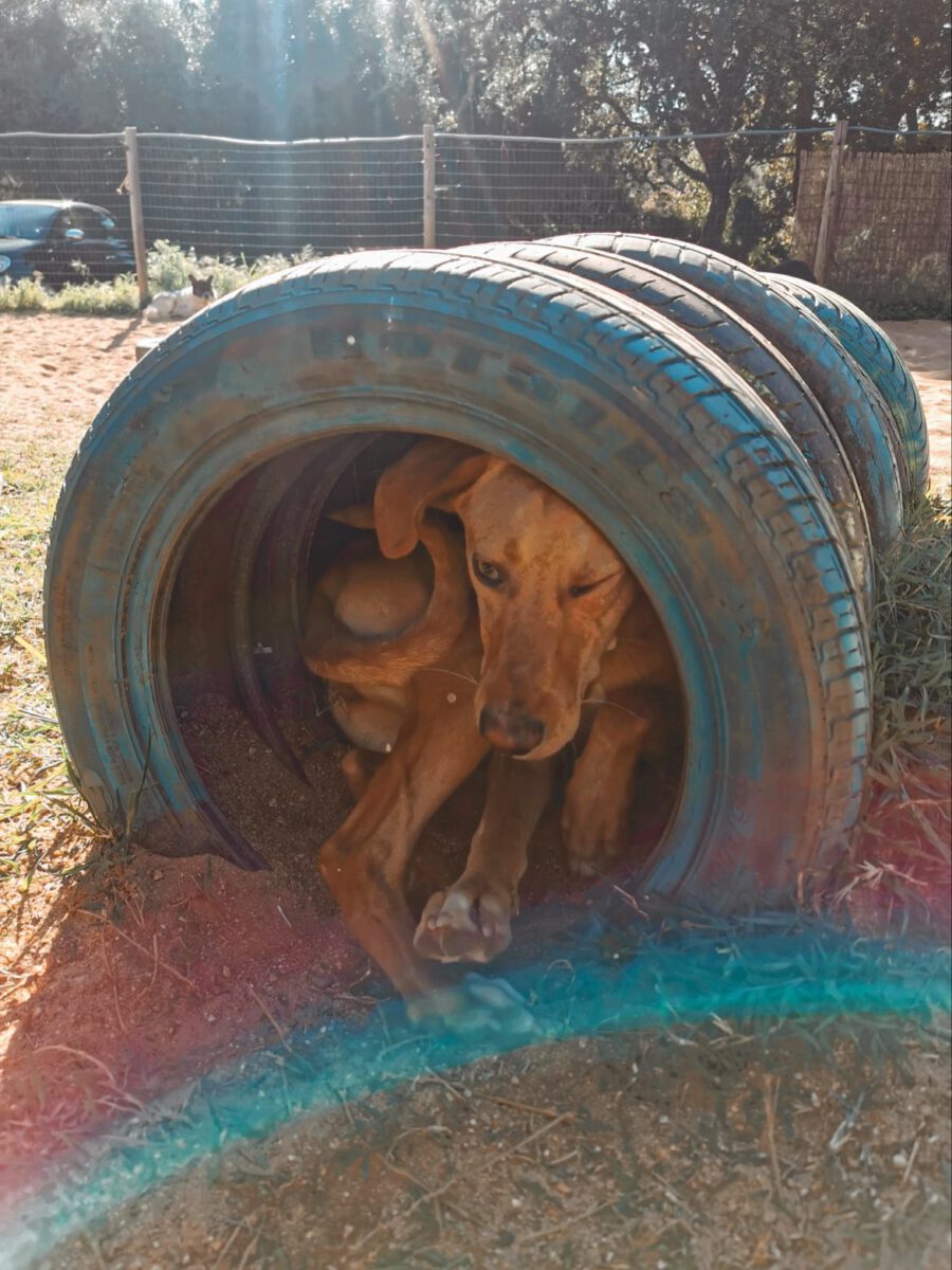Toffee lived on the street. Local residents saw her again and again and wanted to help her, but she refused to be caught. When she got lost in a garden at some point, the resident called for help and Elena set off with Neele and her dog Belle. It took two days to finally get Toffee, but now she is with us at the PLACE for STRAYS and is really fine.