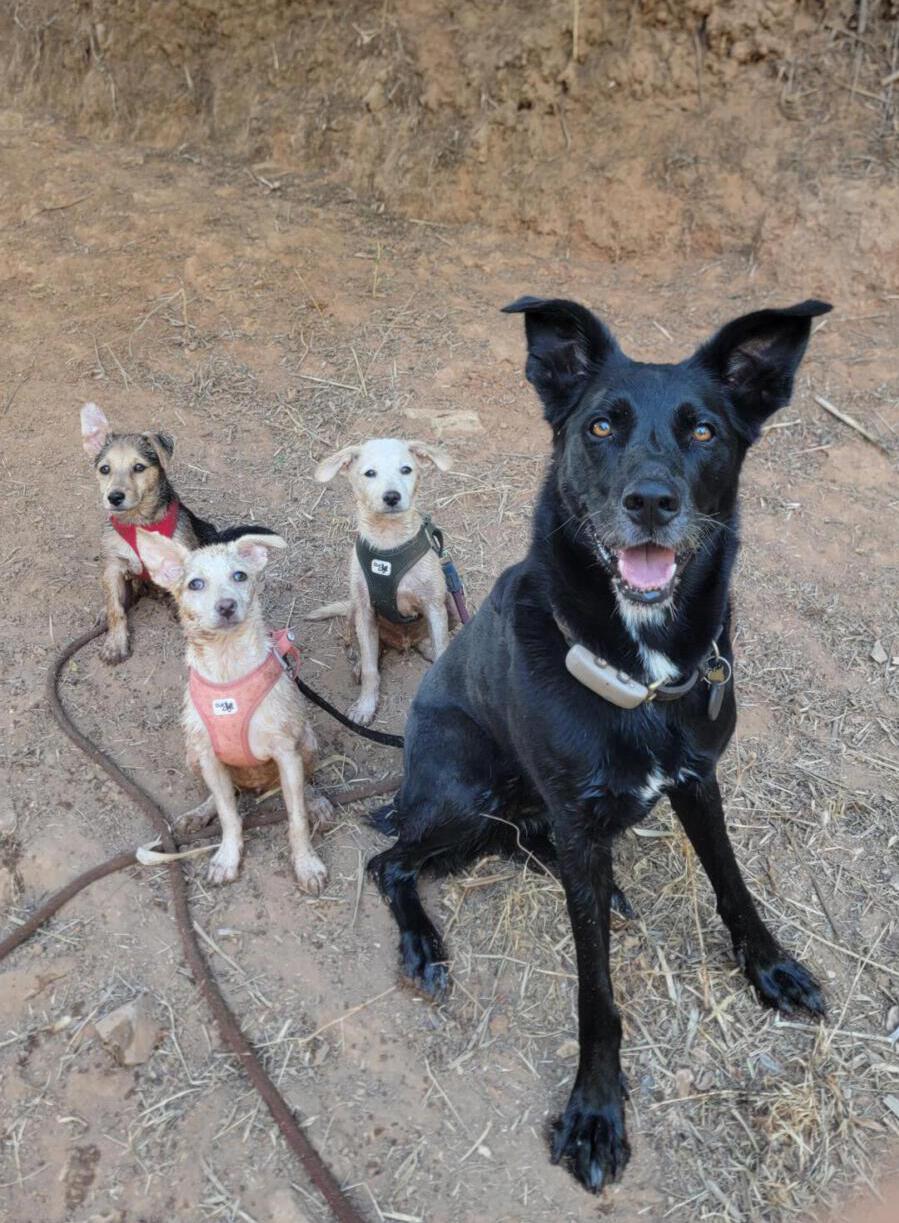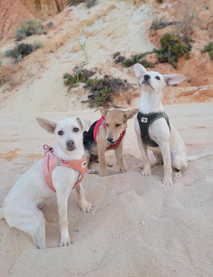 Dank der schnellen Hilfe von engagierten Helfer:innen und der liebevollen Pflege durch Elena, die sich rund um die Uhr mit Fläschchen und ganz viel Liebe um sie kümmerte, haben sich die drei zu starken, gesunden Junghunden entwickelt.