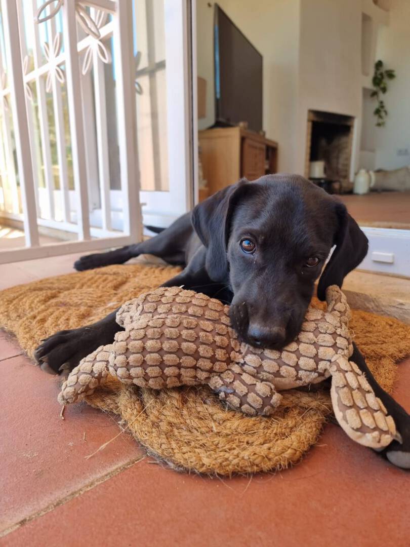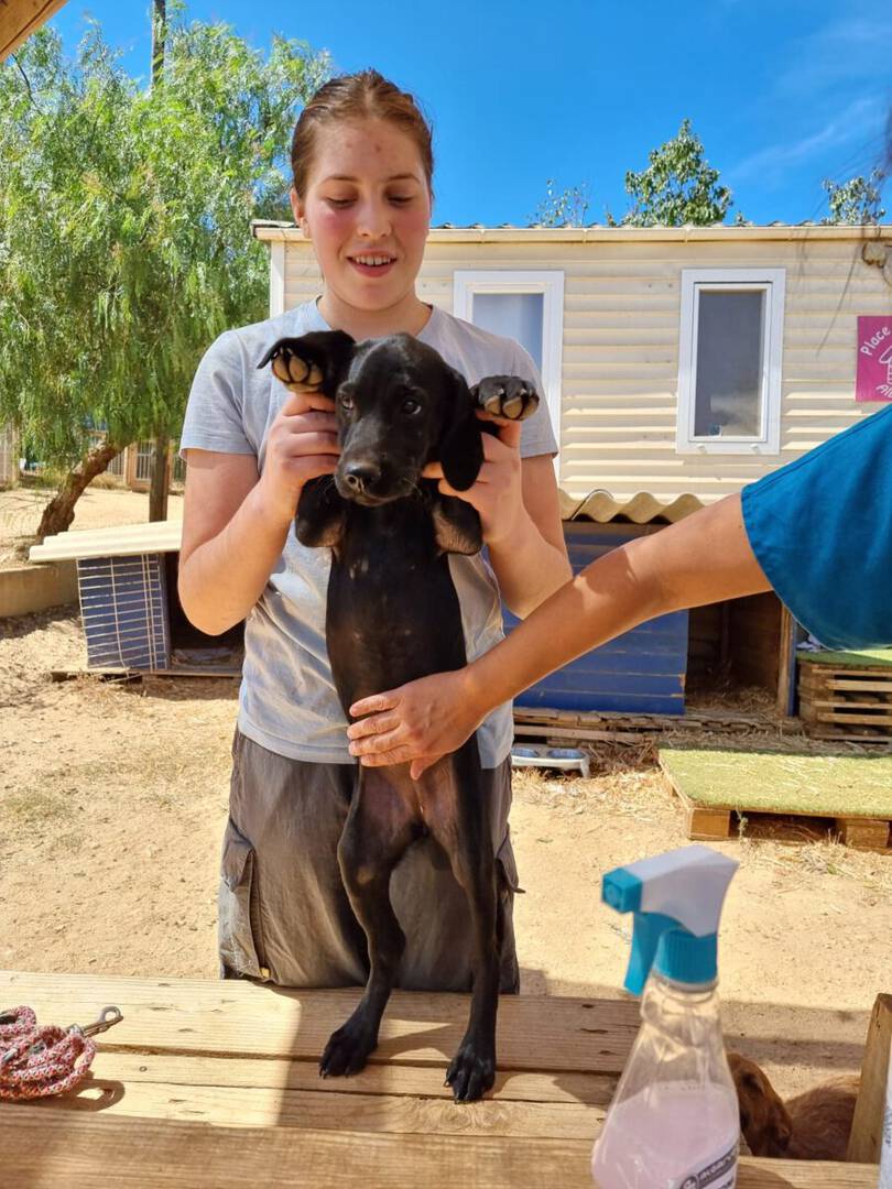 Blacky war etwa drei Monate alt als sie von Urlaubern allein am Strand gefunden wurde. Sie war voller Parasiten und in einem so schlechten Zustand, dass sie sogar drei Tage in der Klinik verbringen musste. Ihre Retter kümmerten sich liebevoll um die Kleine, doch als sie wieder nach Hause mussten, nahmen wir das Welpenmädchen auf.
