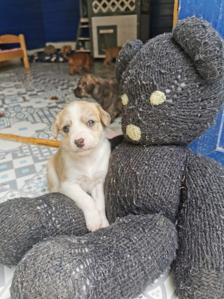 Wir erhielten wieder einmal einen Hilferuf von einer engagierten Tierschützerin, die Nikita und ihre neugeborenen Welpen in einem Zigeunerlager im Dreck liegen sah. Damit diese Hündin nicht weitere Würfe auf die Welt bringen muss und die Welpen nicht einem Leben in Angst, Krankheit und Gefahr auf der Straße ausgesetzt sind, nahmen wir die kleine Familie bei uns im PLACE for STRAYS auf. Hier kümmern wir uns nun liebevoll um Nikita und ihre Kleinen, so auch um die kleine Blanche.