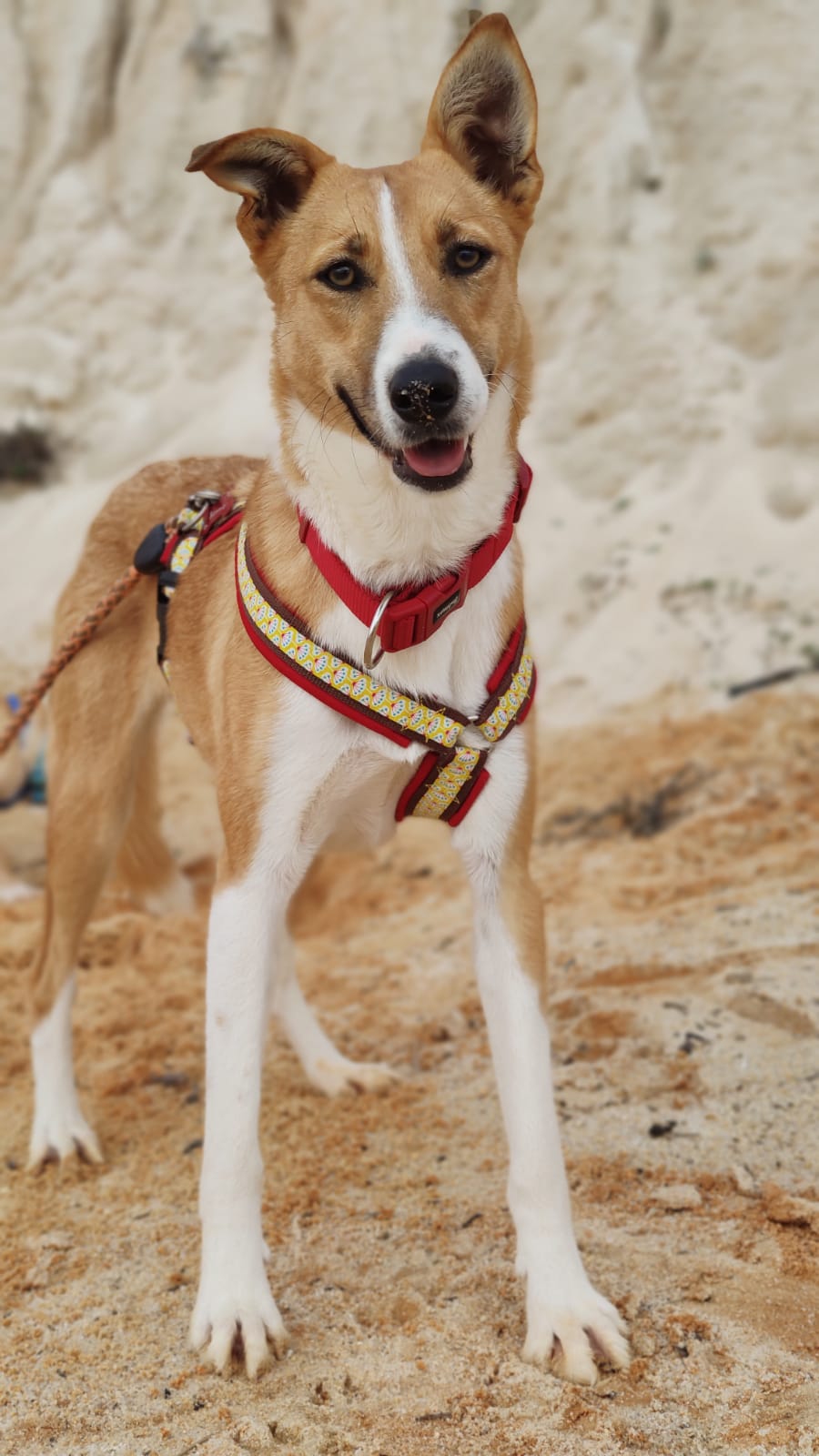 Unsere süße Bonnie ist im Vergleich zu ihrem Bruder Oscar etwas ruhiger und hält sich erstmal im Hintergrund, während die anderen Hunde im Shelter um die Menschen herumwuseln. Wenn man dann jedoch Bonnie für sich alleine hat und mit ihr unterwegs ist, merkt man erst, wie besonders toll die sanfte Maus ist! Gemütlich entdeckt sie gerne in aller Ruhe mit den Menschen die Welt und verhält sich draußen wahnsinnig Vorbildlich. In neuen Situationen reagiert sie erstmals unsicher und vorsichtig. Andere Hunde helfen ihr hier ungemein, an denen sie sich orientieren kann und die ihr Sicherheit geben. Unsere Bonnie läuft super an der Leine und durfte bisher auch schon auf ein paar Ausflüge gehen und z.B. den Strand entdecken. Bonnie kann sich zwar auch super alleine beschäftigen, doch auch sie genießt es, wenn man sie in ruhigen Momenten kuschelt und freut sich sehr über die menschliche Aufmerksamkeit. Wir könnten uns diese süße Maus auch super als Zweithund in einer Familie vorstellen und hoffen, dass sie bald ihr für-immer Zuhause findet.