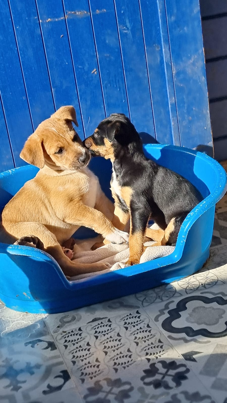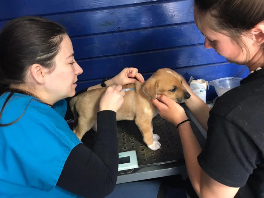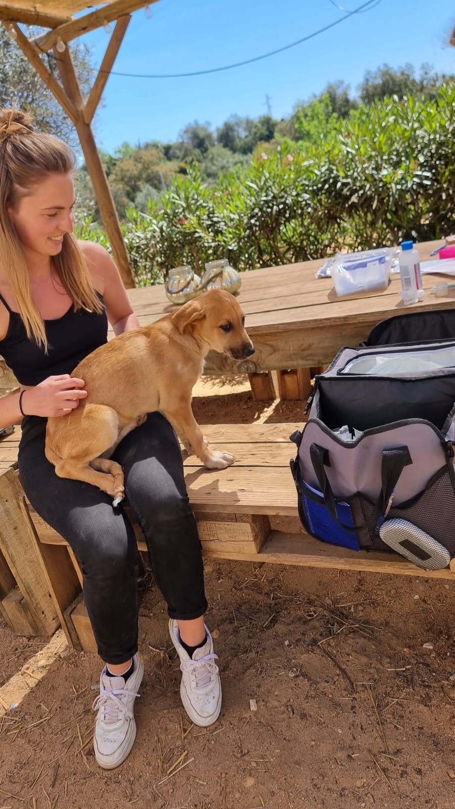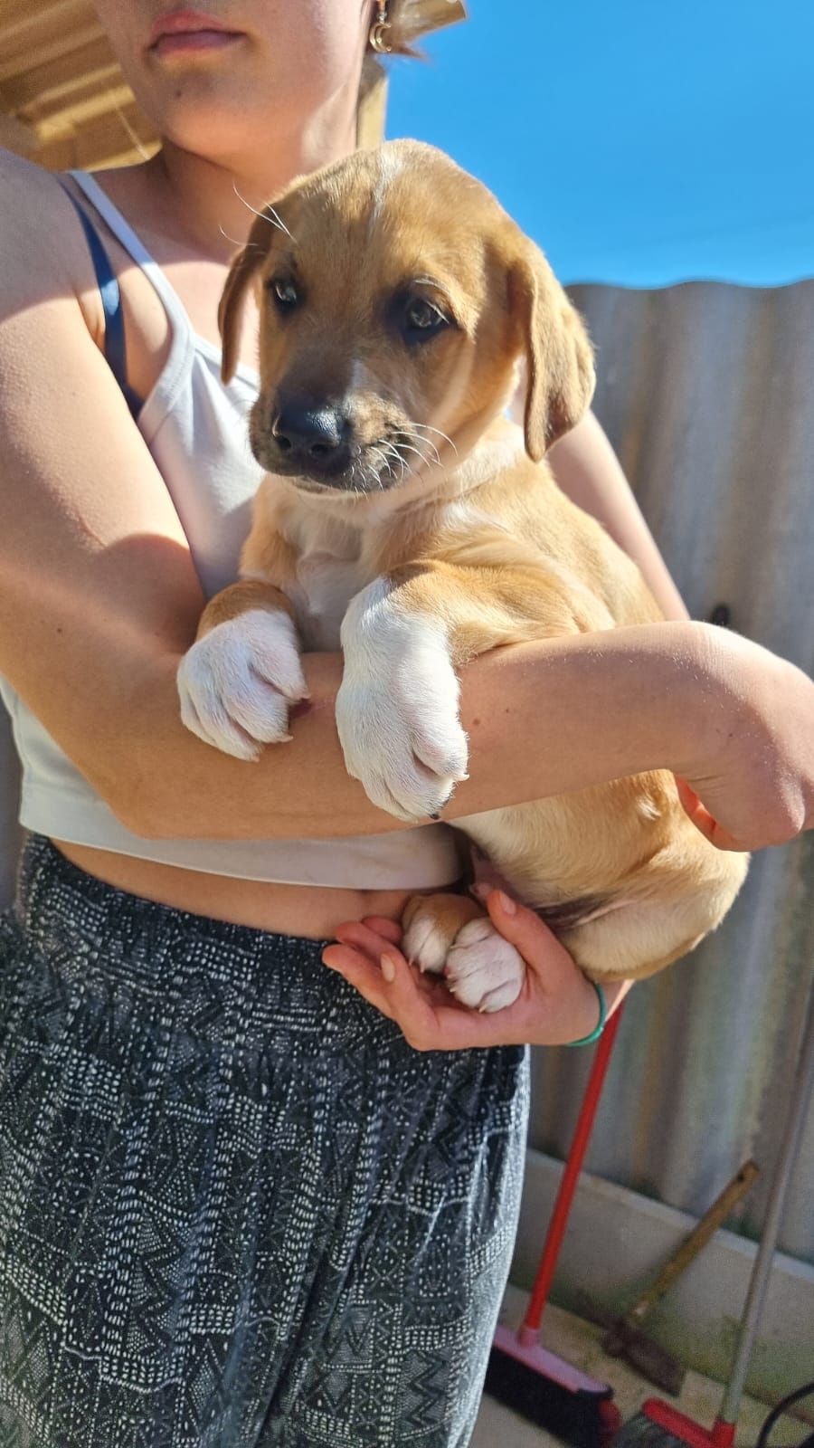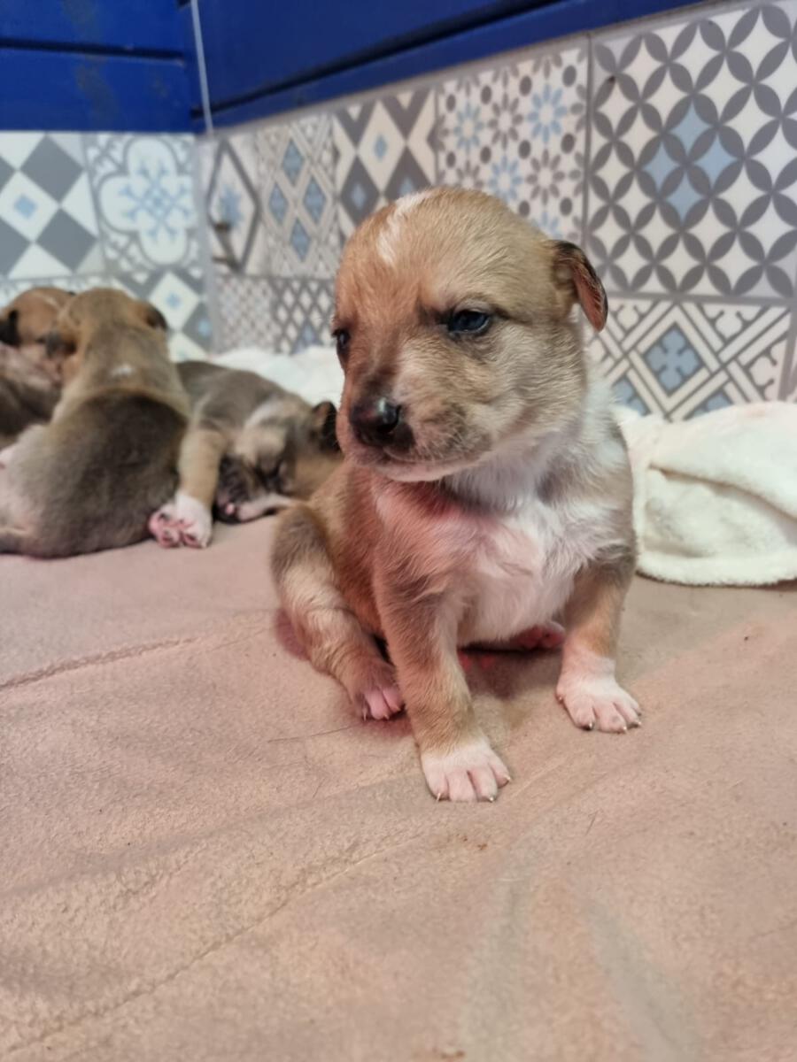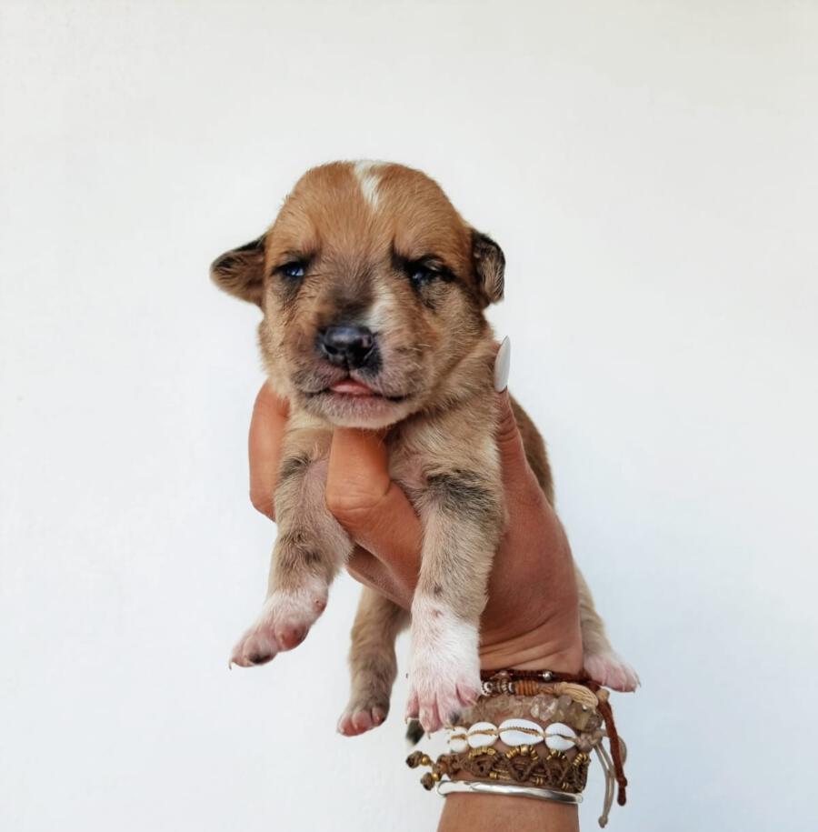 Mit einem restlichen Stück Schnur um den Hals und zahlreichen Wunden wurde die Hündin Priya von einem Mann auf seinem neu gekauften Grundstück zurückgelassen aufgefunden. Leider konnte er sie wegen seines eigenen Hundes nicht behalten und brachte sie deshalb zu Algarvet. Nachdem sie dort ihre ersten Untersuchungen sowie Behandlung ihrer Wunden erhielt, durfte sie ins PLACE for STRAYS einziehen – und das nicht alleine: Der erste Check-Up bei unserem Tierarzt bestätigte dass die Hundedame hochträchtig war! Wir sind sehr froh, dass sie rechtzeitig gefunden wurde und ihre Welpen nicht auf der Straße zur Welt bringen musste, denn diese ließen nicht lang auf sich warten. Kaum im PLACE for STRAYS angekommen brachte die tapfere Mama 9 Welpen zur Welt, von denen es leider nur 7 schafften, einer davon war der süße BumBum.