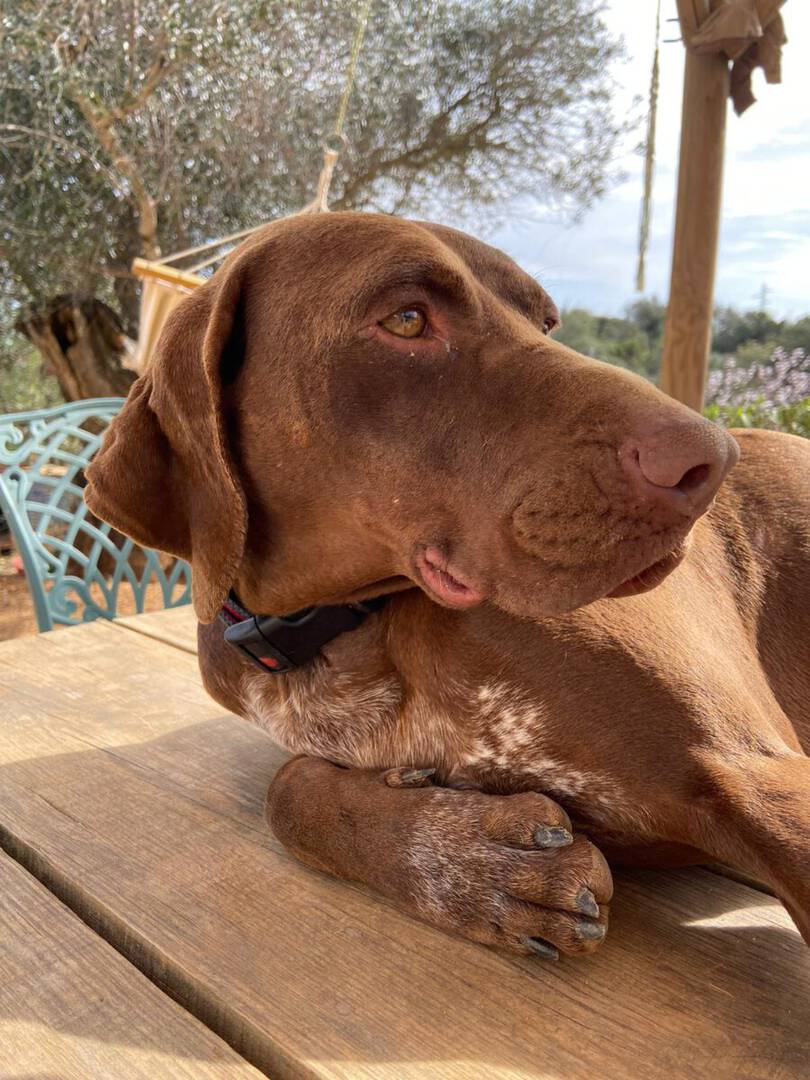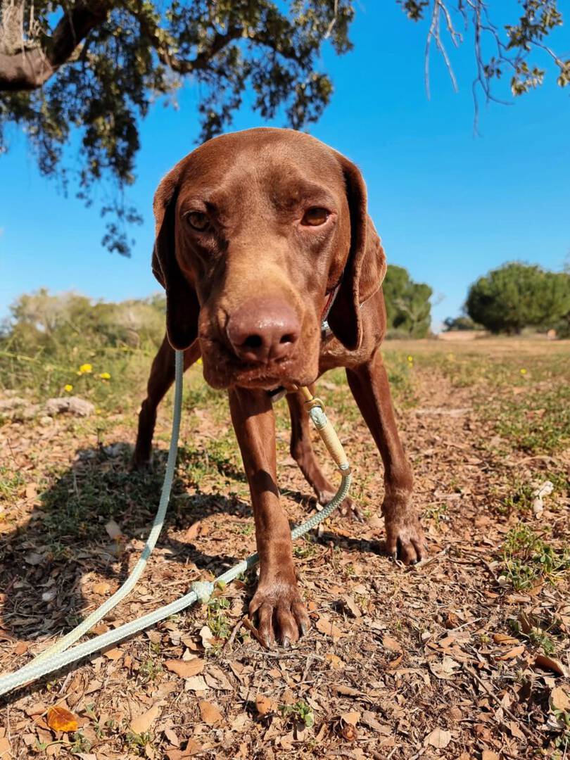 Spazierengehen liebt Cacau auch sehr. Hier merkt man ihr jedoch deutlich an, dass sie ein Jagdhund ist und wir vermuten, dass sie auch jagdlich geführt wurde. Sie ist draußen sehr aufgeregt, findet alles super spannend und würde gerne allen Fährten folgen. Dadurch zieht sie beim Gassigehen an der Leine. Hieran sollte auf jeden Fall noch weiter trainiert werden und auch ein Anti-Jagd-Training gemacht werden.