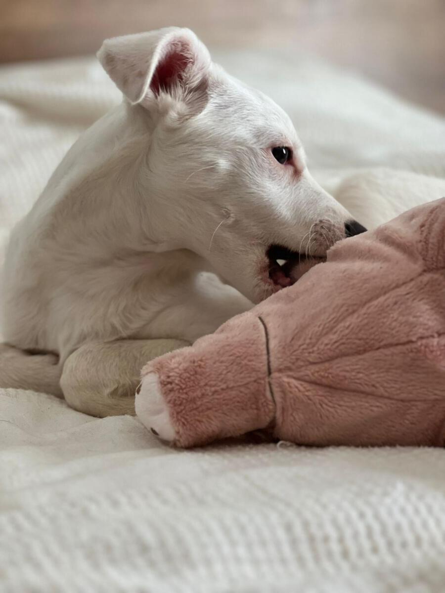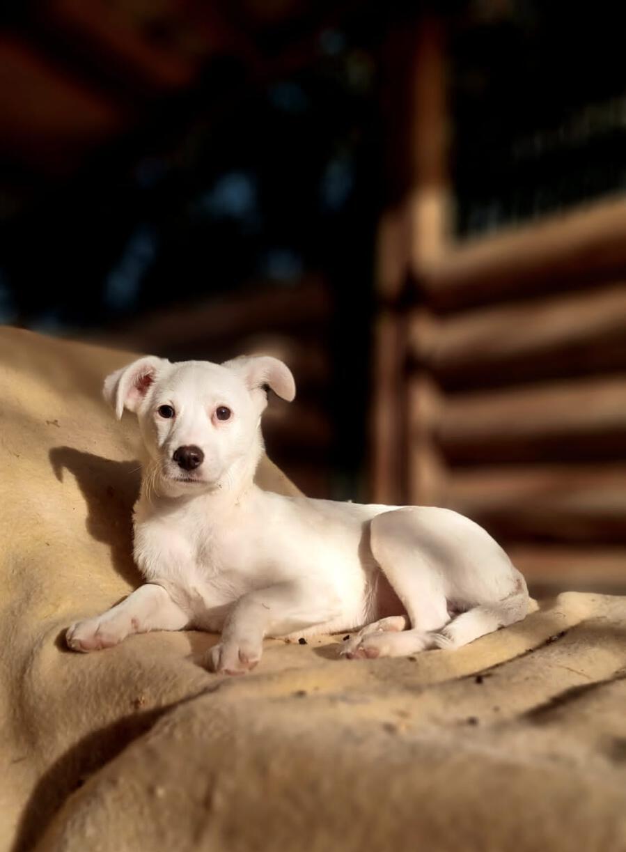 Unsere kleine Camille lebt jetzt seit knapp 4 Wochen bei unser Helferin Lena, die sie netterweise als Pflegehund aufgenommen hat. Und seitdem hat der kleine Wirbelwind schon ein großes Talent gezeigt: Quatsch machen! Camille hat immer „lustige“ Ideen und es wird nie langweilig mit ihr. Die kleine Maus kann ganz schön frech sein, hat aber (auch dank Lenas erwachsenen Hunden) gelernt wie man sich auch mal benehmen kann. An der Leinenführigkeit arbeitet Lena ganz fleißig und draußen gibt sich Camille auch ganz mutig und abenteuerlustig. Wenn dann aber gruselige Fremde oder andere Hunde auftauchen, wird sie ein bisschen misstrauisch und unsicher. Auch das generelle Misstrauen gegen Fremde hat sie noch nicht ganz abgelegt. Aber sie lässt sich immer schneller überzeugen, dass man es nur gut mit ihr meint.