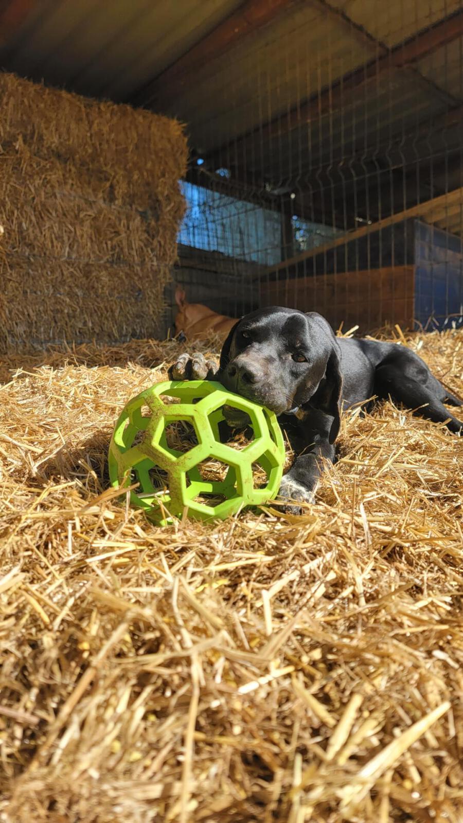 Colette hat sich schnell im Shelter eingelebt. Sie macht eine tolle Entwicklung, zeigt sich als sehr menschenbezogen und freundlich. Sie ist ein typischer vergnügter Welpe, freut sich über Menschen, Spiel- und Krauleinheiten. Auch die Integration ins Rudel hat sehr gut funktioniert, weil sie sich gut mit anderen Hunden versteht. Welpentypisch ist sie noch sehr verspielt und liebt das Wasser. Sie würde am liebsten den ganzen Tag lang planschen. Sie hat viel Energie und manchmal auch Quatsch im Kopf. Sie zeigt sich als Hund der viel ausgelastet werden möchte, Dinge erleben will und gerne dabei ist. Für ihre verschiedenen Gesundheitstest, kennt sie mittlerweile auch den Tierarzt und zeigt sich dort ebenfalls freundlich, wenn auch ein bisschen nervös. Sie lässt sich aber gut beruhigen, auch beim Autofahren kommt sie schnell zur Ruhe und macht es sich bequem. Bei einem ersten Ausflug am Strand hat sie sich zwar schüchtern, aber sehr sozial gezeigt. Auch mit Kindern hat sie das sehr gut gemacht. Colette hat generell sehr viel Energie und versprüht eine Menge Lebensfreude. Bei normalen Spaziergängen an der Leine fehlt ihr noch ein bisschen der Fokus, die vielen äußeren Eindrücke machen sie ein bisschen aufgeregt. Sie lässt sich aber trotzdem gut managen und zeigt sich als sehr neugierig und unerschrocken.Auch bei Besuch im Shelter ist Colette meistens die erste im Begrüßungskomittee und zeigt sich als sehr offen gegenüber fremden Menschen.