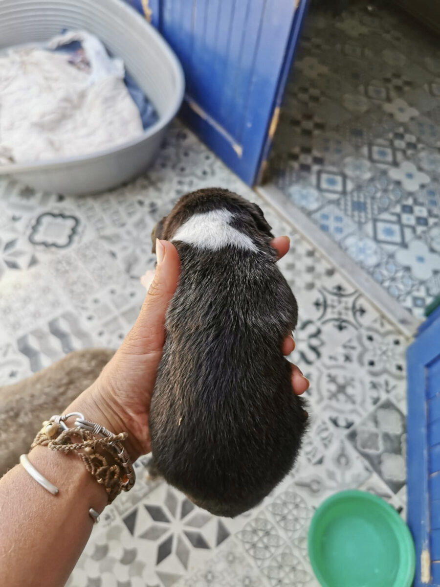 Wir erhielten wieder einmal einen Hilferuf von einer engagierten Tierschützerin, die Nikita und ihre neugeborenen Welpen in einem Zigeunerlager im Dreck liegen sah. Damit diese Hündin nicht weitere Würfe auf die Welt bringen muss und die Welpen nicht einem Leben in Angst, Krankheit und Gefahr auf der Straße ausgesetzt sind, nahmen wir die kleine Familie bei uns im PLACE for STRAYS auf. Hier kümmern wir uns nun liebevoll um Nikita und ihre Kleinen, so auch um die kleine Edda.