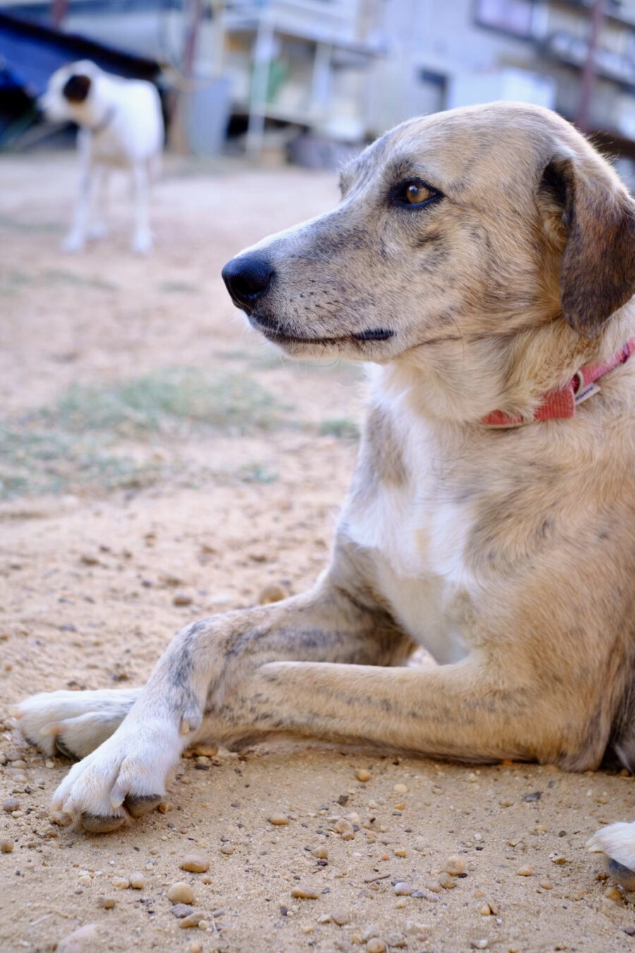 Gala war in der Anfangszeit sehr skeptisch gegenüber Menschen. Die Zeit, die sie bei Elena in Pflege war, hat ihr daher sehr gut getan. Dort war sie auch schnell stubenrein. Sie konnte erfahren, dass die Menschen es ab jetzt nur noch gut mit ihr meinen. Als ihre Welpen dann soweit waren, zog die kleine Familie im PLACE for STRAYS ein. Dort darf Gala sich frei auf dem Gelände bewegen.