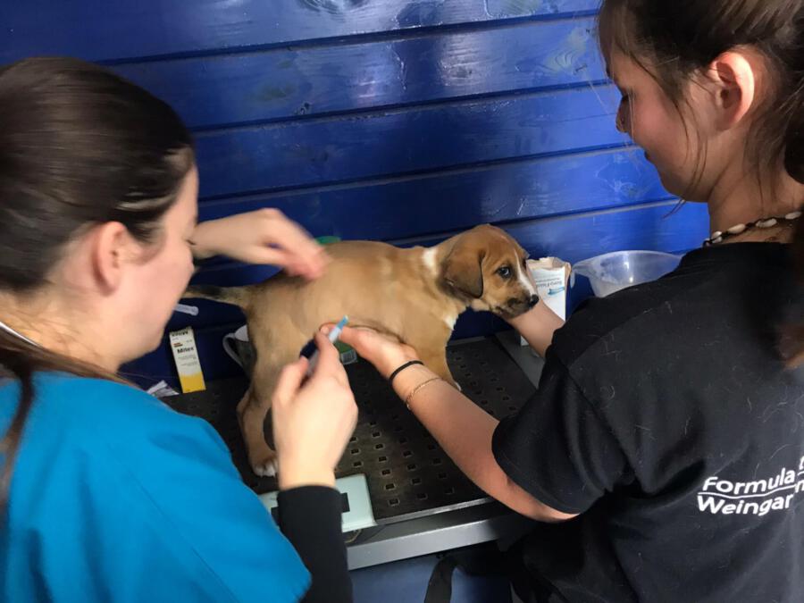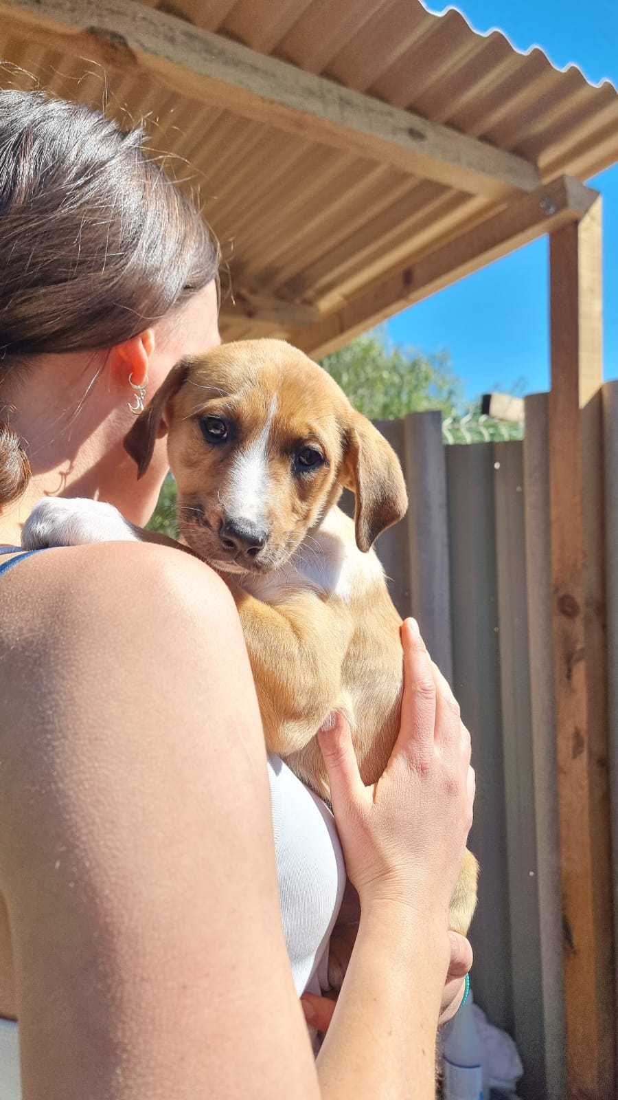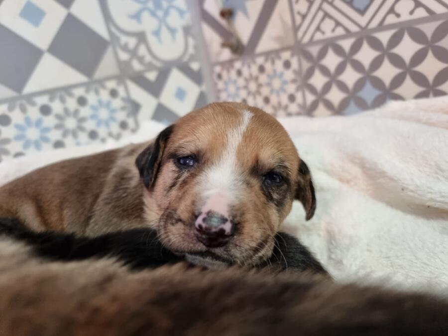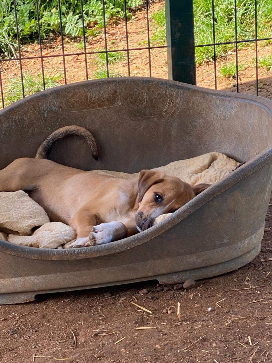 Mit einem restlichen Stück Schnur um den Hals und zahlreichen Wunden wurde die Hündin Priya von einem Mann auf seinem neu gekauften Grundstück zurückgelassen aufgefunden. Leider konnte er sie wegen seines eigenen Hundes nicht behalten und brachte sie deshalb zu Algarvet. Nachdem sie dort ihre ersten Untersuchungen sowie Behandlung ihrer Wunden erhielt, durfte sie ins PLACE for STRAYS einziehen – und das nicht alleine: Der erste Check-Up bei unserem Tierarzt bestätigte dass die Hundedame hochträchtig war! Wir sind sehr froh, dass sie rechtzeitig gefunden wurde und ihre Welpen nicht auf der Straße zur Welt bringen musste, denn diese ließen nicht lang auf sich warten. Kaum im PLACE for STRAYS angekommen brachte die tapfere Mama 9 Welpen zur Welt, von denen es leider nur 7 schafften, eine davon ist die süße Ginger.