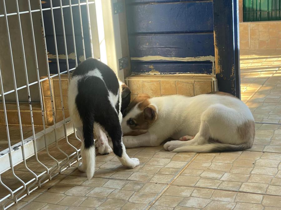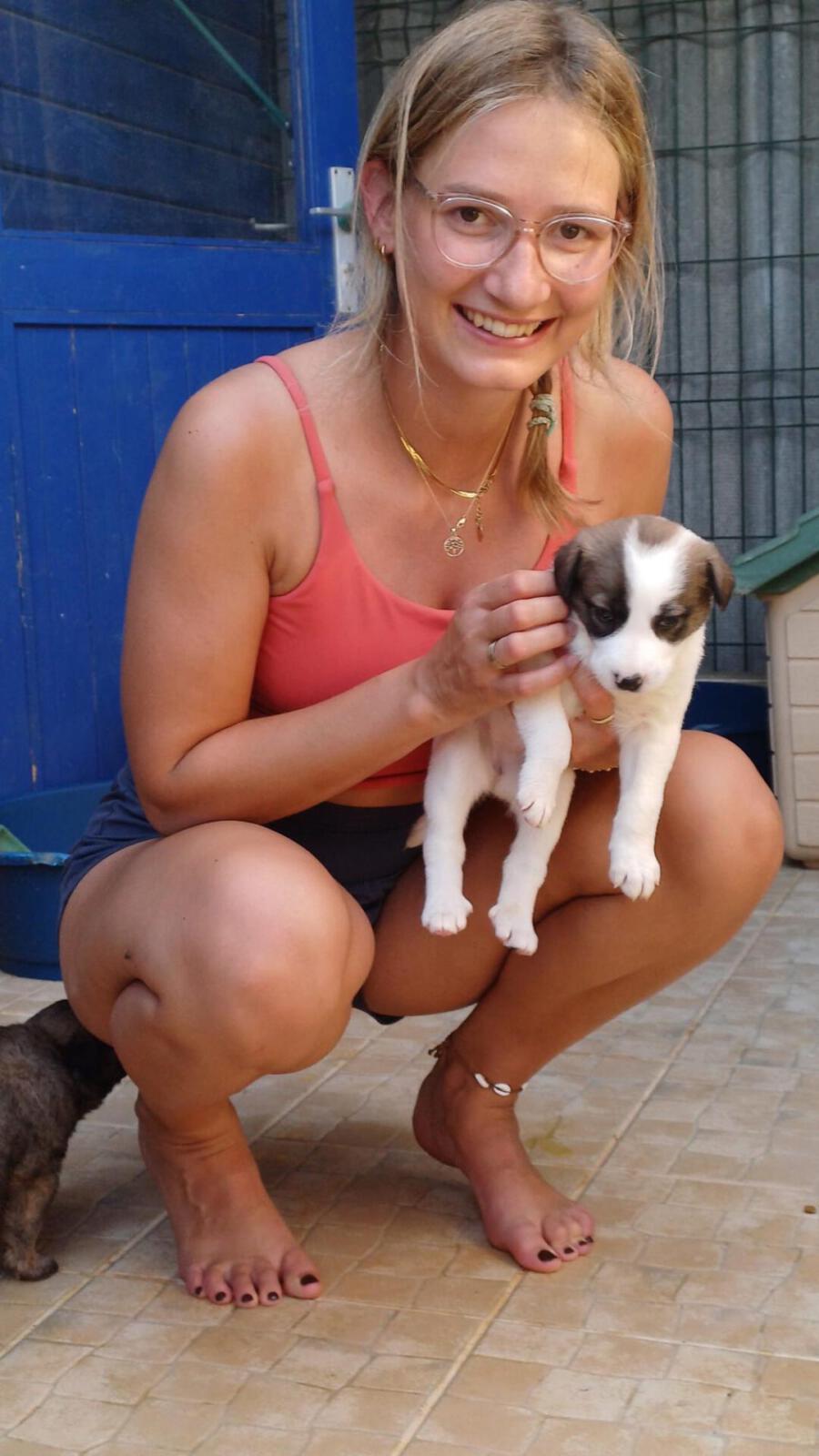 Wieder durften wir einen Welpenwurf bei uns willkommen heißen. Die sieben kleinen Neuzugänge wurden gemeinsam mit ihrer Mama und einem weiteren Geschwisterchen im Feld entdeckt. Ihre Finder entschieden sich, die Mama sowie einen Welpen zu adoptieren, doch die restlichen sieben Welpen fanden keinen Platz und zogen somit im PLACE for STRAYS ein. Doch den Kleinen ging es plötzlich gar nicht gut. Sie bekamen starken Durchfall und wir mussten sie sofort in die Tierklinik nach Faro bringen. Dort kam die Diagnose: Parvo-Virus positiv. Ein Wort, das uns allen jedes Mal den Boden unter den Füßen wegzieht – denn Parvo ist hoch ansteckend, sehr gefährlich und gerade für junge Welpen lebensbedrohlich. Lily kämpfte zusammen mit ihren Geschwistern in der Klinik um ihr Leben. Leider schafften es nicht alle, doch Ginny wurde glücklicherweise wieder gesund.